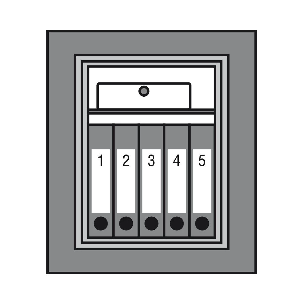 Für einen sicheren Stand des Tresors sorgt die mittig-angeordnete Bohrung zur Bodenverankerung. Durch die Lackierung in schlichtem Lichtgrau (RAL 7035) fügt sich der Schrank unauffällig in viele Umgebungen ein.