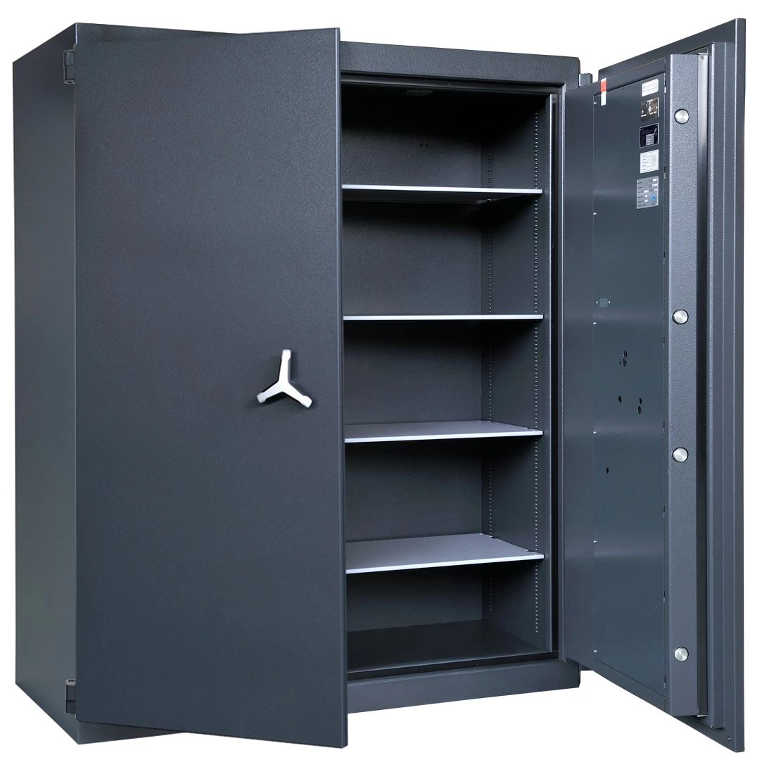 - Serienmäßig mit einem EN 1300-zertifizierten Doppelbart-Schlüsselschloss (Schlüssellänge 210 mm), auf Wunsch mit mechanischen oder elektronischen Kombinations-Schlössern
