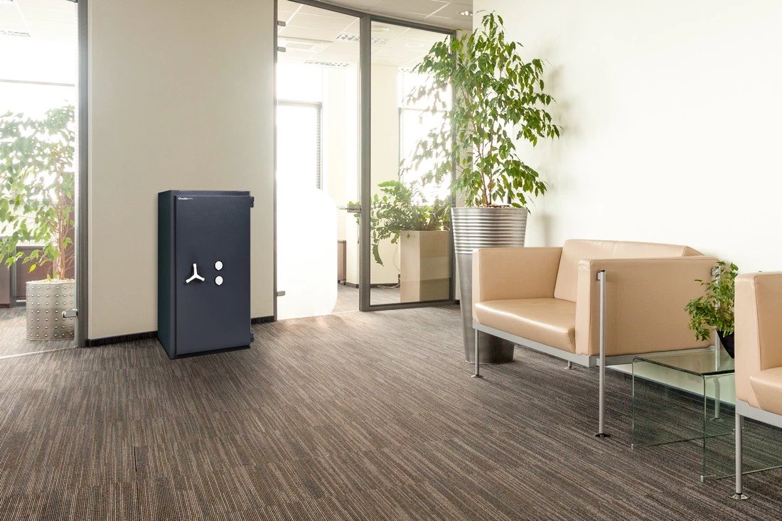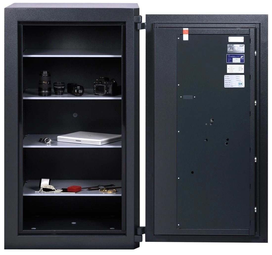 - Serienmäßig mit einem EN 1300-zertifizierten Doppelbart-Schlüsselschloss (Schlüssellänge 210 mm), auf Wunsch mit mechanischen oder elektronischen Kombinations-Schlössern