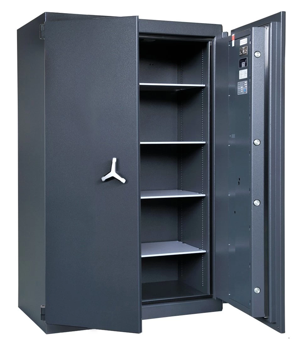 - Serienmäßig mit einem EN 1300-zertifizierten Doppelbart-Schlüsselschloss (Schlüssellänge 210 mm), auf Wunsch mit mechanischen oder elektronischen Kombinations-Schlössern