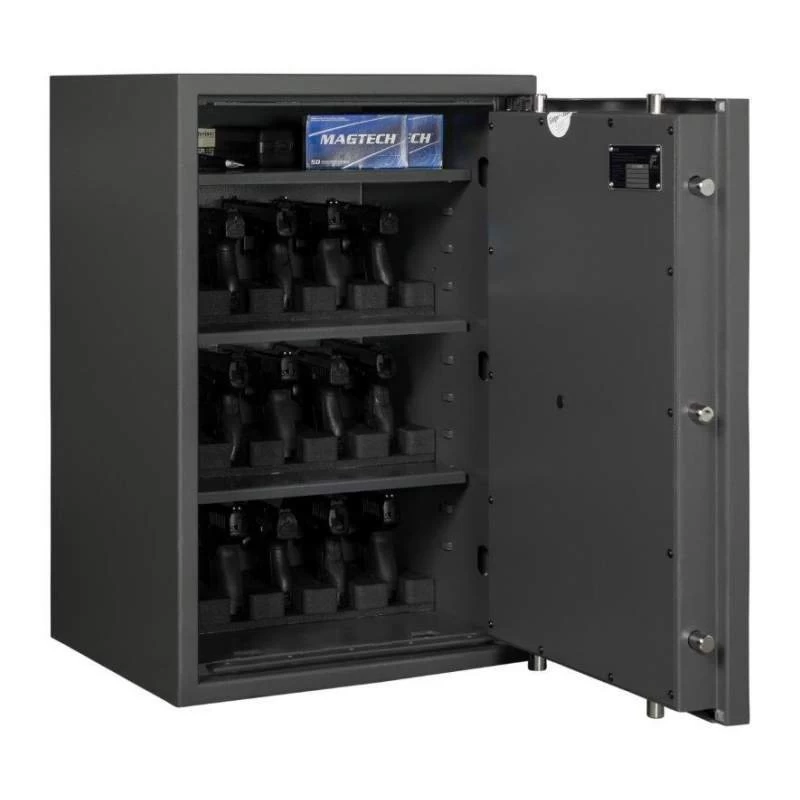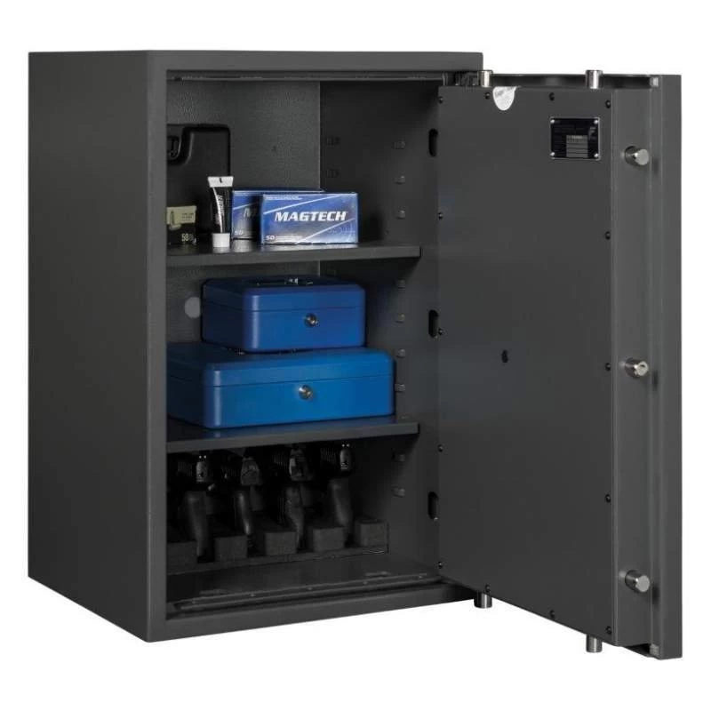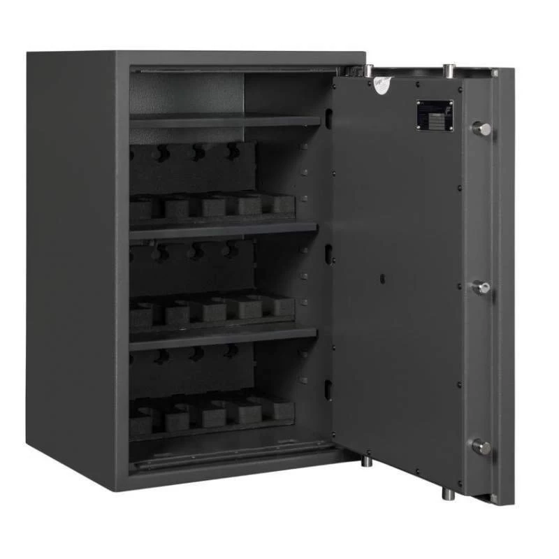 Die Kurzwaffentresore der Reihe KWT von Format eignen sich zur sicheren und gesetzeskonformen Aufbewahrung Ihrer wertvollen Kurzwaffen und Munition. Gemäß dem zertifizierten Sicherheitsgrad 1 dürfen nach den aktuell geltenden bundesdeutschen Waffengesetzen in allen Modellen dieser Bauserie Kurzwaffen legal gelagert werden. Die 4-seitige Türverriegelung durch massive Schließbolzen gewährleistet eine zusätzliche Absicherung gegenüber unerwünschten Zugriffen von außen. Erhältlich ist die KWT-Serie mit dem Grad 1 in insgesamt 7 verschiedenen Ausführungen.