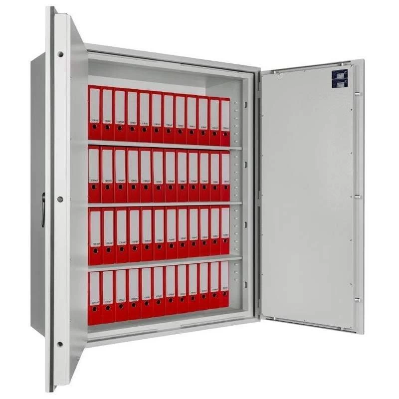 Der Paper Star Light von Format ist ein solider Brandschutzschrank, welcher Papierdokumente, Wertgegenstände und Bargeld bis zu 30 Minuten lang vor Feuer schützt. Die Baureihe umfasst 4 verschiedene Modelle mit einem Fassungsvermögen von bis zu 75 A4-Ordnern. Darüber hinaus besitzen Tresore dieser Serie einen zertifizierten Einbruchschutz der Sicherheitsstufe S2. Die doppelwandigen Papiersicherungsschränke verfügen über eine 3-wandige Tür mit einer sicheren, 4-seitigen Schließbolzen-Verriegelung.