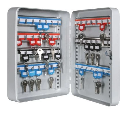 Die Schlüsselkästen SK von Format sind ideal zur Aufbewahrung von bis zu 49 Schlüsseln. Die Schlüsselkassetten verfügen über Hakenleisten welche im Raster höhenverstellbar sind und ebenfalls einzeln nachgerüstet werden können. Neben der Wandmontage können sie auch in Möbeln oder Schränken montiert werden. Dank der im Korpus integrierten Scharnierbänder lässt sich die Türe um 180° öffnen.