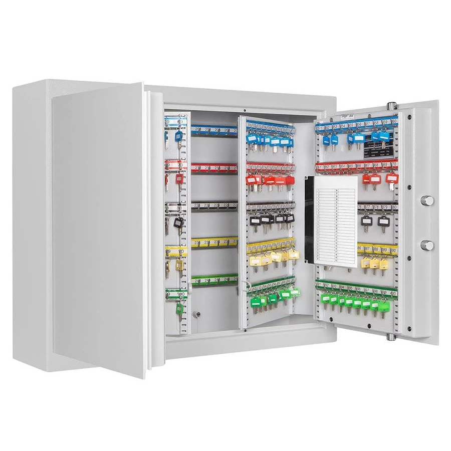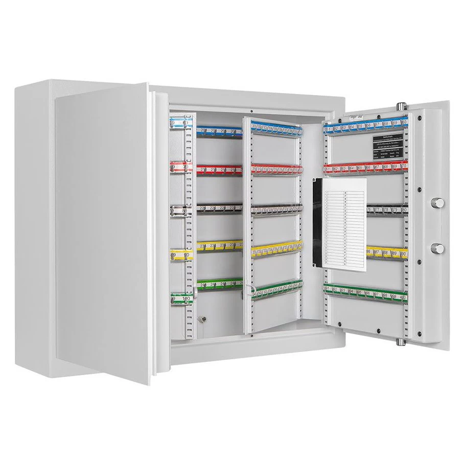 Die Schlüsseltresore der STZ-Baureihe von Format sind ein sicherer und übersichtlicher Aufbewahrungsort für bis zu 400 oder 600 Schlüssel. Mit Sicherheitsstufe A nach VDMA 24992 bieten sie gute Sicherheit auch für sensible Schlüssel. Dank der zweitürigen Konstruktion, können Schlüssel übersichtlich und komfortabel gesichert und auch wieder entnommen werden.