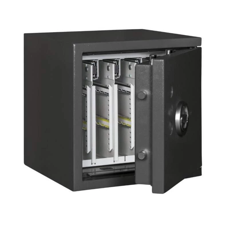 - Türfront und Korpus des Tresors sind gegen Angriffe mit mechanischen und thermischen Einbruchwerkzeugen geschützt