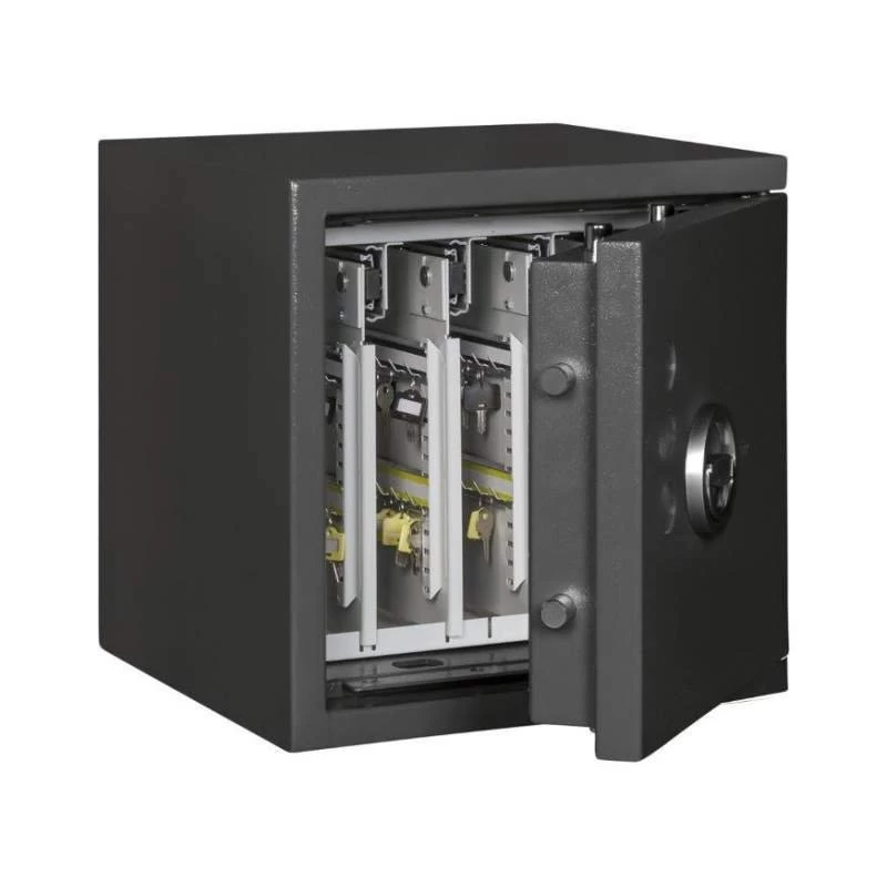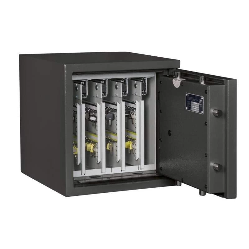Die Schlüsseltresore der Format-Serie STL sind Standardmodelle für die zuverlässige Aufbewahrung von Einzelschlüsseln. Bequeme, ausziehbare Schlüsselwände sorgen für eine ideale Raumnutzung. Die 4-seitige Verriegelung durch massive Schließbolzen gewährleistet eine sichere Lagerung Ihrer Schlüsselbestände gemäß der Sicherheitsstufe 0/N. Darüber hinaus bieten die STL-Tresore eine zusätzliche Notverriegelung, welche beim Aufbruchversuch das unbefugte Öffnen erschwert, sowie auch einen Schutz der Türfront und des Korpus gegenüber Angriffen mit mechanischen und thermischen Einbruchwerkzeugen.