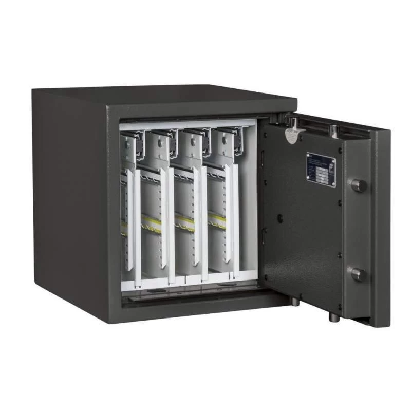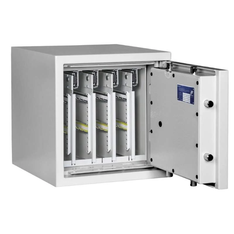 Zertifiziert sind die Tresore dieser Serie nach EN1143-1 entsprechend der Sicherheitsstufe 0/N. In der privaten Nutzung bedeutet dies einen Versicherungswert von etwa € 40.000, in der gewerblichen Nutzung ist der Tresor bis etwa € 10.000 versicherbar.*