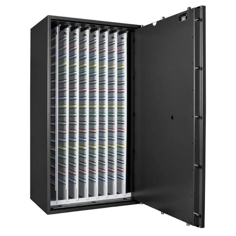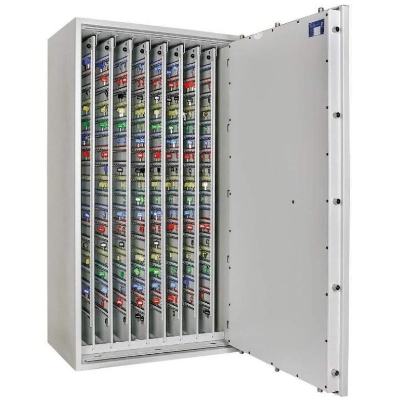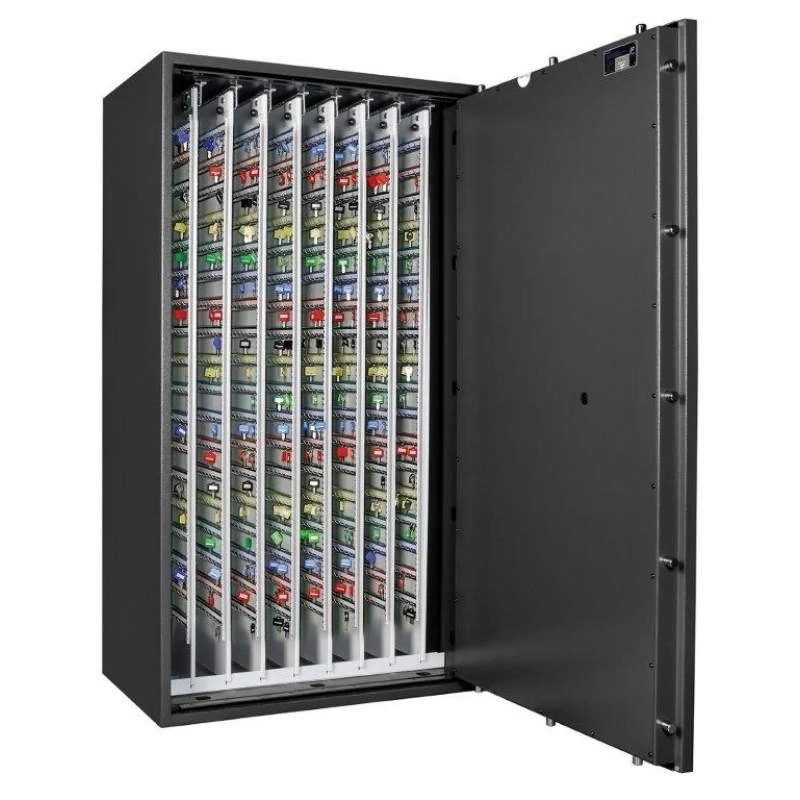 Die Schlüsseltresore der Format-Serie STL sind Standardmodelle für die zuverlässige Aufbewahrung von Einzelschlüsseln. Bequeme, ausziehbare Schlüsselwände sorgen für eine ideale Raumnutzung. Die 4-seitige Verriegelung durch massive Schließbolzen gewährleistet eine sichere Lagerung Ihrer Schlüsselbestände gemäß der Sicherheitsstufe 0/N. Darüber hinaus bieten die STL-Tresore eine zusätzliche Notverriegelung, welche beim Aufbruchversuch das unbefugte Öffnen erschwert, sowie auch einen Schutz der Türfront und des Korpus gegenüber Angriffen mit mechanischen und thermischen Einbruchwerkzeugen.