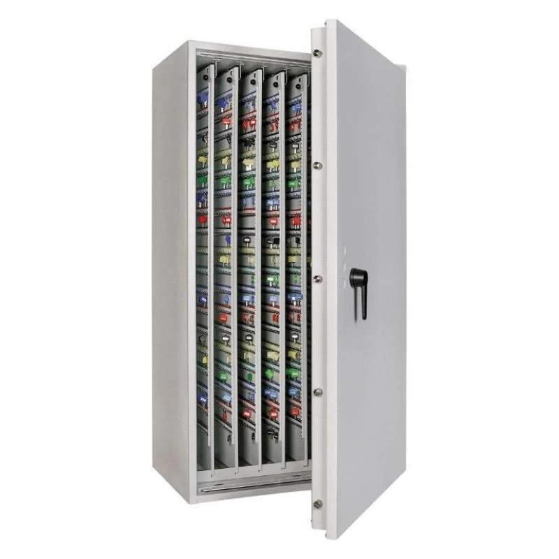 Die Schlüsseltresore der Format-Serie STL sind Standardmodelle für die zuverlässige Aufbewahrung von Einzelschlüsseln. Bequeme, ausziehbare Schlüsselwände sorgen für eine ideale Raumnutzung. Die 4-seitige Verriegelung durch massive Schließbolzen gewährleistet eine überaus sichere Lagerung Ihrer Schlüsselbestände gemäß der Sicherheitsstufe 1. Darüber hinaus bieten die STL-Tresore eine zusätzliche Notverriegelung, welche beim Aufbruchversuch das unbefugte Öffnen erschwert, sowie auch einen Schutz der Türfront und des Korpus gegenüber Angriffen mit mechanischen und thermischen Einbruchwerkzeugen.