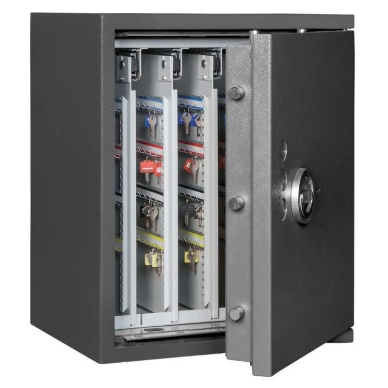 Die Schlüsseltresore der Format-Serie STL sind Standardmodelle für die zuverlässige Aufbewahrung von Einzelschlüsseln. Bequeme, ausziehbare Schlüsselwände sorgen für eine ideale Raumnutzung. Die 4-seitige Verriegelung durch massive Schließbolzen gewährleistet eine überaus sichere Lagerung Ihrer Schlüsselbestände gemäß der Sicherheitsstufe 1. Darüber hinaus bieten die STL-Tresore eine zusätzliche Notverriegelung, welche beim Aufbruchversuch das unbefugte Öffnen erschwert, sowie auch einen Schutz der Türfront und des Korpus gegenüber Angriffen mit mechanischen und thermischen Einbruchwerkzeugen.