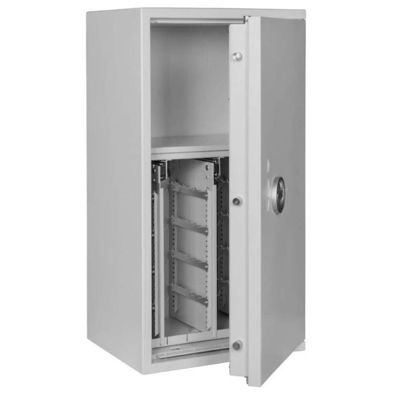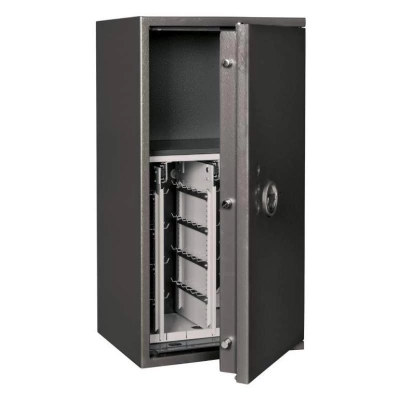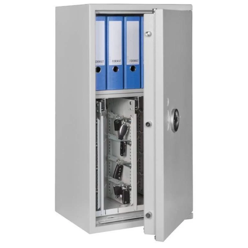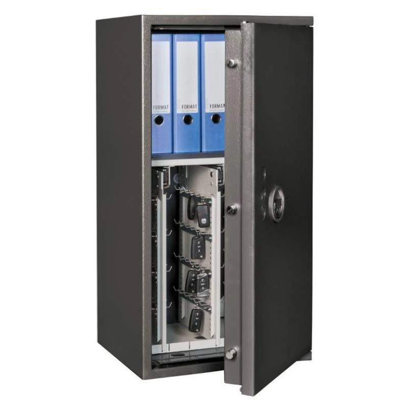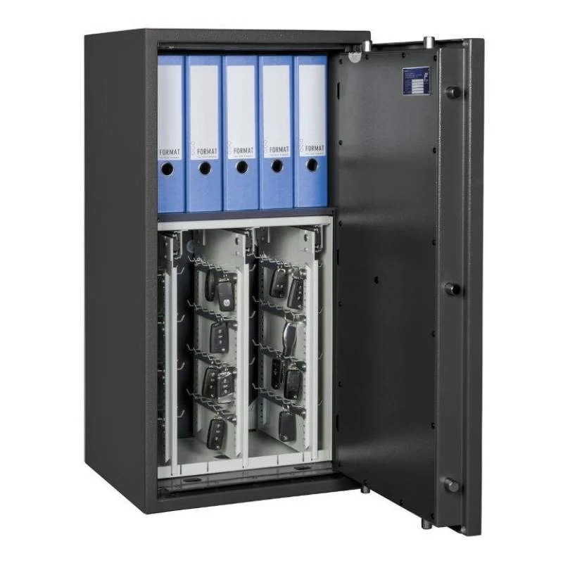 Die Schlüsseltresore der Format-Serie STL AS sind Standardmodelle für die zuverlässige Aufbewahrung von Autoschlüsseln und Schlüsselbünden. Bequeme, ausziehbare Schlüsselwände sorgen für eine ideale Raumnutzung.* Eine 4-seitige Verriegelung durch massive Schließbolzen gewährleistet eine sichere Lagerung Ihrer Schlüsselbestände gemäß der Sicherheitsstufe 1. Darüber hinaus bieten die STL-Tresore eine zusätzliche Notverriegelung, welche beim Aufbruchversuch das unbefugte Öffnen erschwert, sowie auch einen Schutz der Türfront und des Korpus gegenüber Angriffen mit mechanischen und thermischen Einbruchwerkzeugen.
