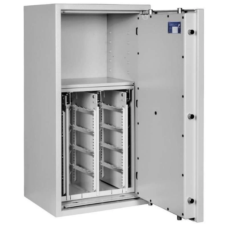 Zertifiziert sind die Tresore dieser Serie nach EN1143-1 entsprechend der Sicherheitsstufe 1. In der privaten Nutzung bedeutet dies einen Versicherungswert von etwa € 65.000, in der gewerblichen Nutzung ist der Tresor bis etwa € 20.000 versicherbar.*