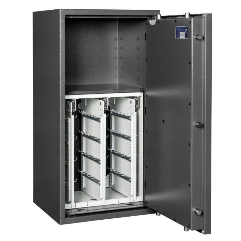 - Türfront und Korpus des Tresors sind gegen Angriffe mit mechanischen und thermischen Einbruchwerkzeugen geschützt