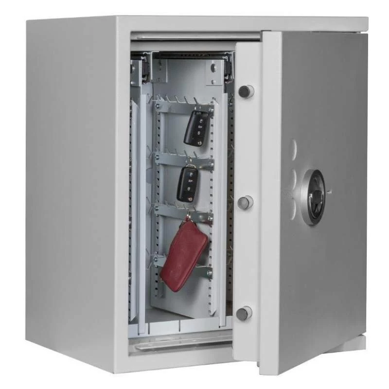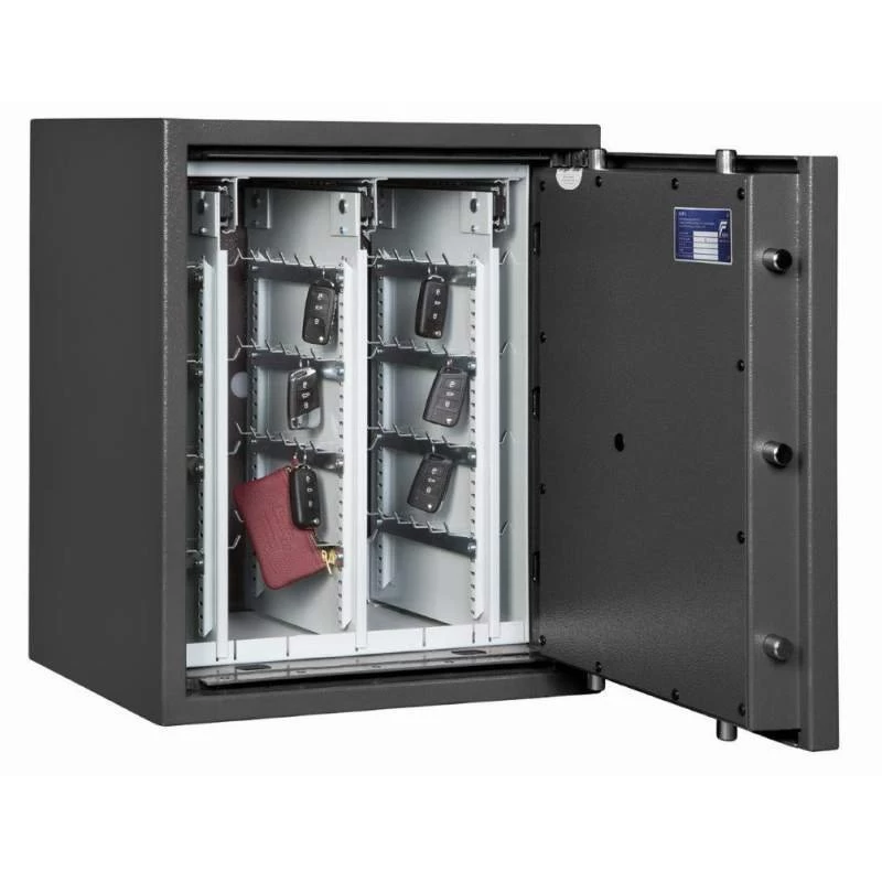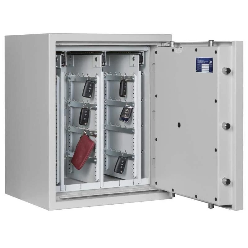 Die Schlüsseltresore der Format-Serie STL AS sind Standardmodelle für die zuverlässige Aufbewahrung von Autoschlüsseln und Schlüsselbünden. Bequeme, ausziehbare Schlüsselwände sorgen für eine ideale Raumnutzung.* Eine 4-seitige Verriegelung durch massive Schließbolzen gewährleistet eine sichere Lagerung Ihrer Schlüsselbestände gemäß der Sicherheitsstufe 0. Darüber hinaus bieten die STL-Tresore eine zusätzliche Notverriegelung, welche beim Aufbruchversuch das unbefugte Öffnen erschwert, sowie auch einen Schutz der Türfront und des Korpus gegenüber Angriffen mit mechanischen und thermischen Einbruchwerkzeugen.