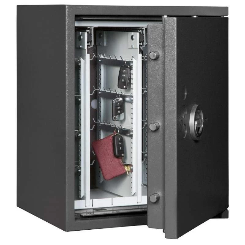 Die Schlüsseltresore der Format-Serie STL AS sind Standardmodelle für die zuverlässige Aufbewahrung von Autoschlüsseln und Schlüsselbünden. Bequeme, ausziehbare Schlüsselwände sorgen für eine ideale Raumnutzung.* Eine 4-seitige Verriegelung durch massive Schließbolzen gewährleistet eine sichere Lagerung Ihrer Schlüsselbestände gemäß der Sicherheitsstufe 0. Darüber hinaus bieten die STL-Tresore eine zusätzliche Notverriegelung, welche beim Aufbruchversuch das unbefugte Öffnen erschwert, sowie auch einen Schutz der Türfront und des Korpus gegenüber Angriffen mit mechanischen und thermischen Einbruchwerkzeugen.
