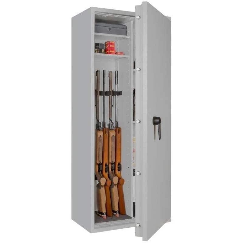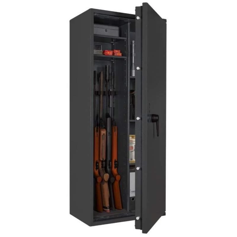 Die Waffenschränke aus der Serie Capriolo von Format ermöglichen die sichere und gesetzeskonforme Aufbewahrung von Lang- wie Kurzwaffen und der dazugehörigen Munition ohne jegliche Höchstmengenbegrenzung dank der zertifizierten Sicherheitsstufe 1. Diese Baureihe bietet einen sehr großzügigen Stauraum und ist in insgesamt 8 unterschiedlichen Ausführungen erhältlich. Aufgrund der strukturierten Schrankeinteilung – abhängig vom Modell sind Capriolo-Tresore mit Trennwand bzw. Fachböden erhältlich – ist eine übersichtliche und geordnete Unterbringung Ihrer Waffen sowie auch der Munition sichergestellt.