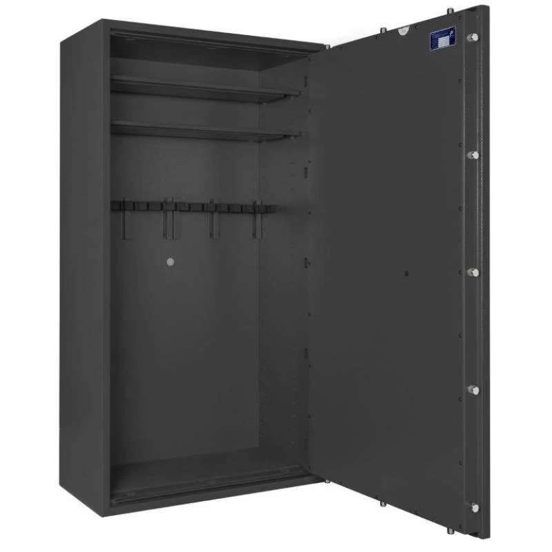 Die Waffenschränke aus der Serie Capriolo von Format ermöglichen die sichere und gesetzeskonforme Aufbewahrung von Lang- wie Kurzwaffen und der dazugehörigen Munition ohne jegliche Höchstmengenbegrenzung dank der zertifizierten Sicherheitsstufe 1. Diese Baureihe bietet einen sehr großzügigen Stauraum und ist in insgesamt 8 unterschiedlichen Ausführungen erhältlich. Aufgrund der strukturierten Schrankeinteilung – abhängig vom Modell sind Capriolo-Tresore mit Trennwand bzw. Fachböden erhältlich – ist eine übersichtliche und geordnete Unterbringung Ihrer Waffen sowie auch der Munition sichergestellt.