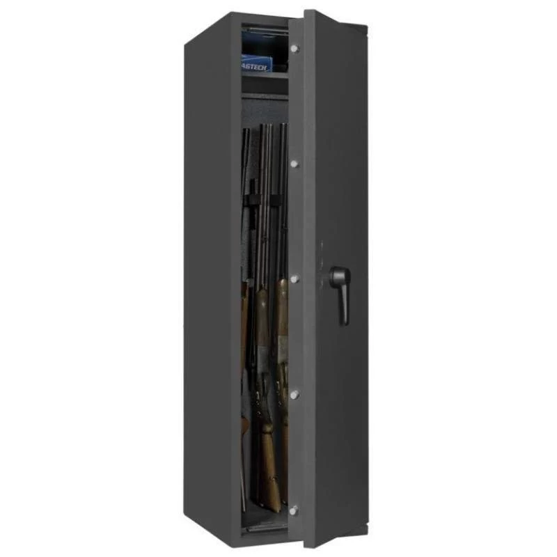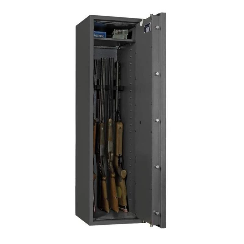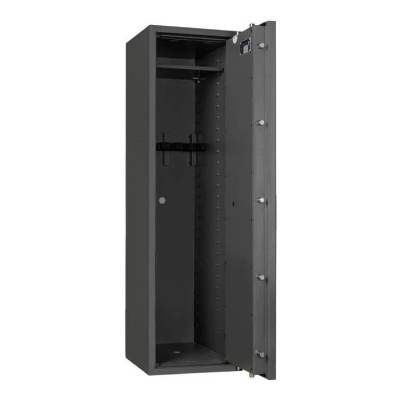 Die Waffenschränke der Serie Capriolo bieten großzügigen Platz für 3 bis 14 Langwaffen. Auch die dazugehörige Munition sowie maximal 5 bzw. 10 Kurzwaffen finden hier gemäß den bundesdeutschen Waffengesetzen einen sicheren Aufbewahrungsort.* Dank der strukturierten Schrankeinteilung ist eine übersichtliche Lagerung Ihrer Waffen problemlos und bequem möglich. Die Waffentresore bestehen aus einem 3-wandigen Korpus und einer 3-wandigen Tür, welche mittels einer sicheren, 4-seitigen Verriegelung durch 20 mm starke Schließbolzen abgeschlossen wird.