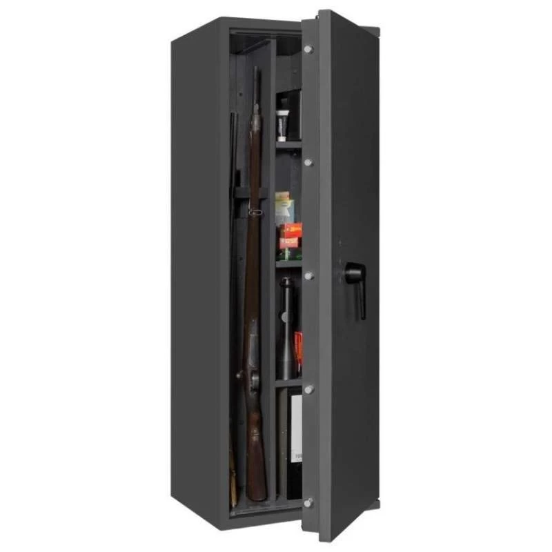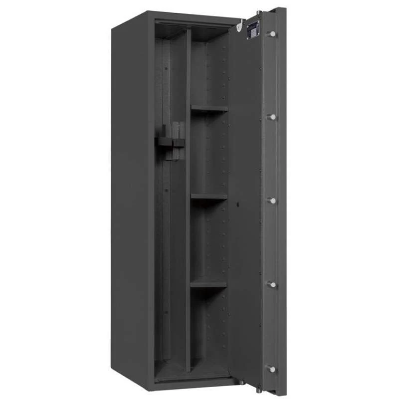 Die Waffenschränke aus der Serie Capriolo von Format ermöglichen die sichere und gesetzeskonforme Aufbewahrung von Lang- wie Kurzwaffen und der dazugehörigen Munition ohne jegliche Höchstmengenbegrenzung dank der zertifizierten Sicherheitsstufe 1. Diese Baureihe bietet einen sehr großzügigen Stauraum und ist in insgesamt 8 unterschiedlichen Ausführungen erhältlich. Aufgrund der strukturierten Schrankeinteilung – abhängig vom Modell sind Capriolo-Tresore mit Trennwand bzw. Fachböden erhältlich – ist eine übersichtliche und geordnete Unterbringung Ihrer Waffen sowie auch der Munition sichergestellt. Capriolo-Waffenschränke bestehen aus einem 3-wandigen Korpus und einer 3-wandigen Tür, welche mittels 4-seitiger Verriegelung durch 20 mm starke, massive Schließbolzen versperrt wird.