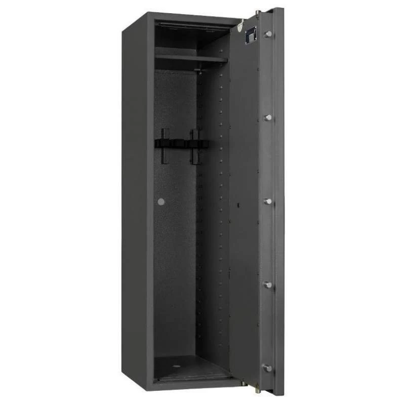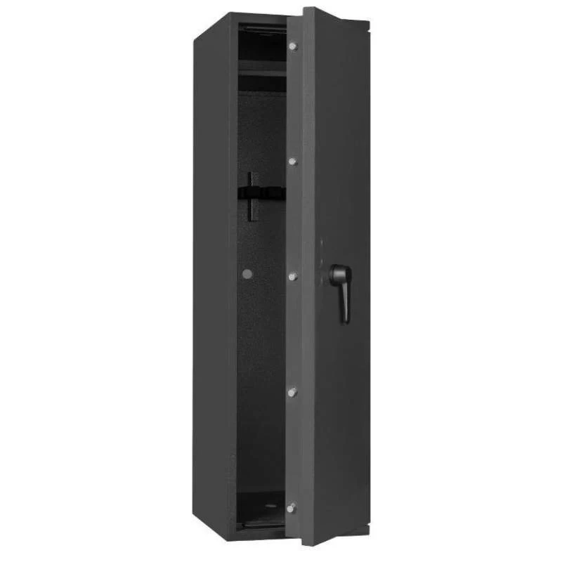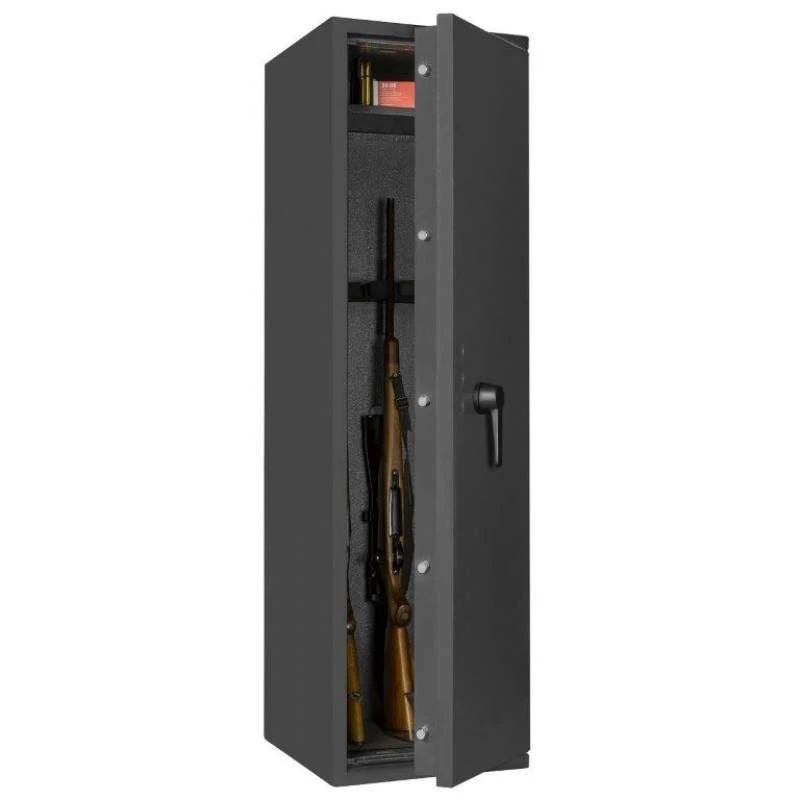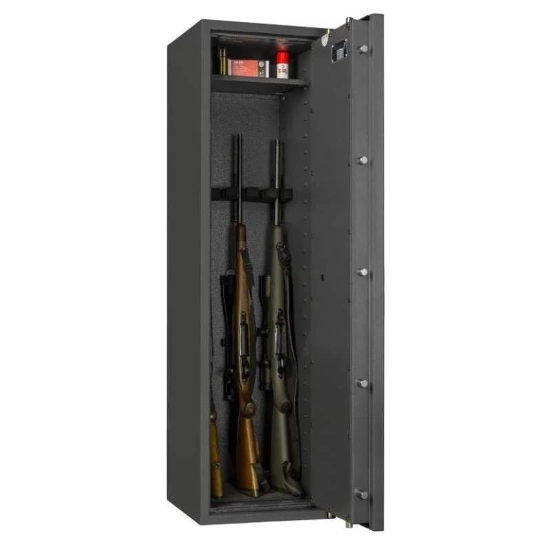 Die Waffenschränke der Serie Corvino bieten in 8 verschiedenen Ausführungen großzügig Platz für 3 bis 14 Langwaffen. Auch die dazugehörige Munition sowie unbegrenzt viele Kurzwaffen finden hier gemäß den bundesdeutschen Waffengesetzen einen sicheren Aufbewahrungsort. Dank der strukturierten Schrankeinteilung ist eine übersichtliche Lagerung Ihrer Waffen problemlos und bequem möglich. Die Waffentresore werden mittels einer sicheren, 4-seitigen Verriegelung durch massive Schließbolzen abgeschlossen.