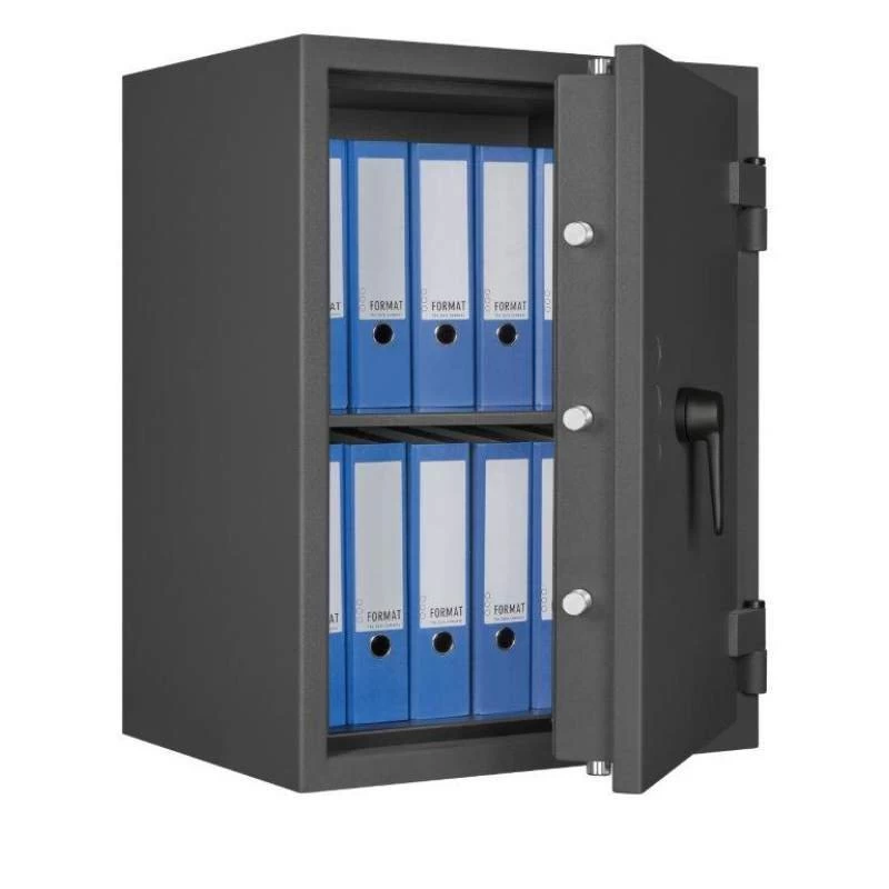 Die geräumigen Wertschutzschränke der Reihe Gemini Pro von Format weisen die zuverlässige Sicherheitsstufe 1 auf. Sie bieten je nach Ausführung sowie Größe Platz für 5 bis 65 Ordner und können sowohl privat als auch gewerblich eingesetzt werden. Die geräumigen, freistehenden Tresore besitzen eine überaus widerstandsfähige Türfront aus hochwertigem Stahl – auch der Korpus ist optimal vor Angriffen mit diversen Einburchswerkzeugen geschützt. Die Tür ist an der Bandseite mit starren Hintergreifprofilen gesichert und bietet darüber hinaus eine 4-seitige Schließbolzenverriegelung.