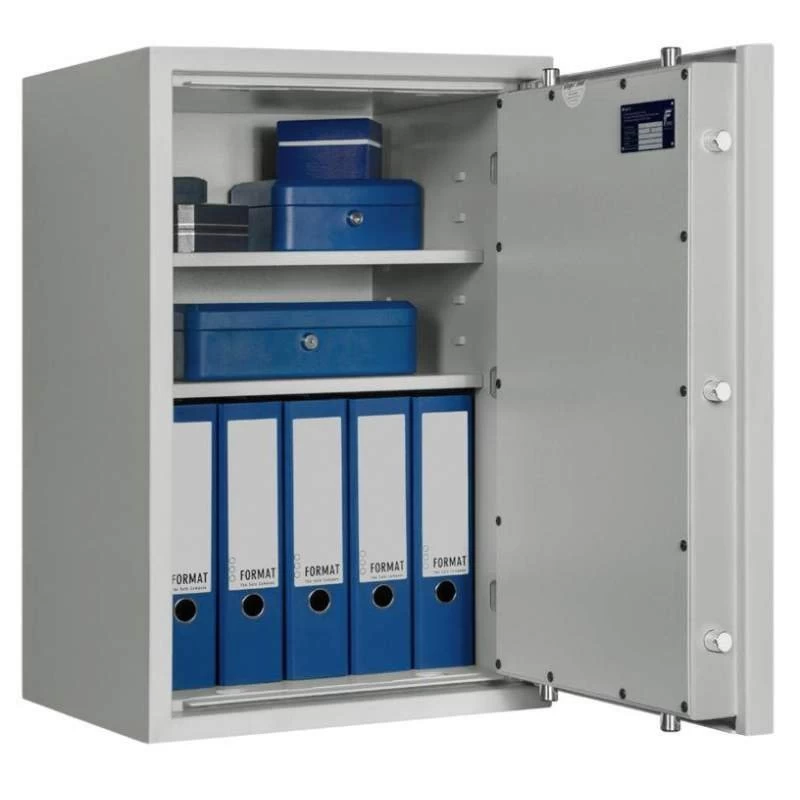 Die hochwertigen Wertschutzschränke der Serie Lyra von Format weisen die Sicherheitsstufe 0 auf. Alle Modelle der Baureihe sind wahlweise auch in der Sicherheitsstufe 1 erhältlich. Die Lyra-Schränke können zudem als Möbeleinsatz- oder BTM-Tresore verwendet werden und punkten mit ihren kompakten Abmessungen sowie dem geringen Gewicht. Sie bestehen aus einem allseitig dreiwandigen Korpus, einer dreiwandigen Tür und einem starren Hintergreifprofil an der Bandseite. Durch die im Rahmen angebrachten Türbänder lässt sich die Tür bis zu einem Winkel von 180° öffnen, womit der Inhalt des Safes stets problemlos zugänglich ist. Zusätzlich wird der Tresor durch eine vierseitige Bolzen-Verriegelung geschützt.