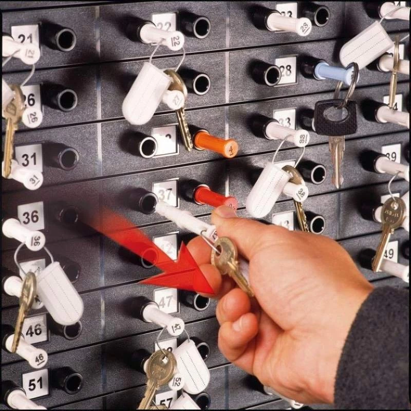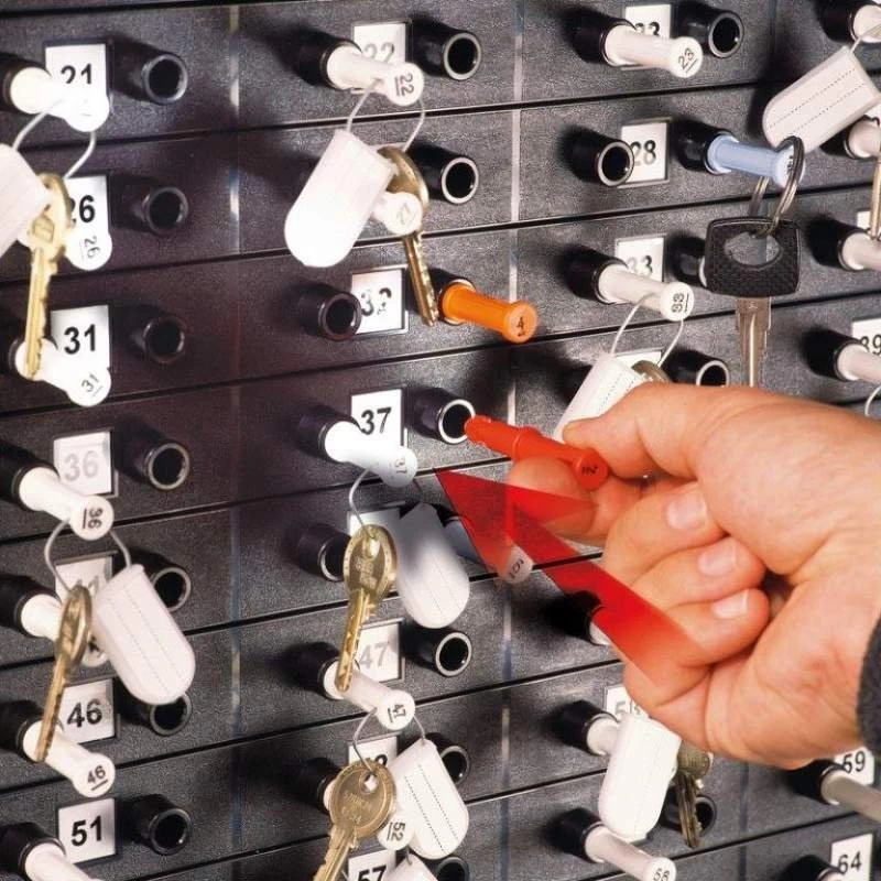 Die Schlüssel-Sticks sind ebenfalls nummeriert, um sicherzugehen, dass sie sich an der richtigen Position befinden. Um der einfachen Ablösung der Schlüssel entgegenzuwirken, werden die gelagerten Schlüssel mit Schlüsselplomben an den Schlüssel-Sticks befestigt. Der einfache aber effektive mechanische Mechanismus benötigt keine Stromzufuhr, ist sofort einsetzbar und erleichtert die Schlüsselorganisation ungemein.