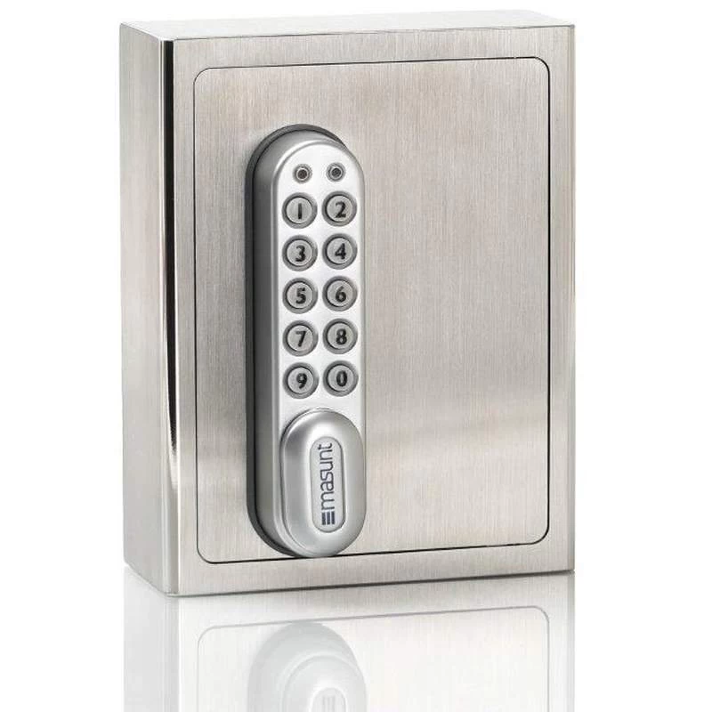 Durch dieses raffinierte System sind die E-Code Schlüsselsafes für viele Anwendungsfälle bestens geeignet. Ob bei kleinen Hotels, Ferienwohnungen/Airbnb, entfernten Unternehmensstandorten, Nebengebäuden oder bei Autovermietungen – diese Schlüsselsafes regeln Ihre Schlüsselübergabe einfach und komfortabel. Dadurch, dass der Safe weder Internet- oder Mobilfunkanbindung, noch einen Stromanschluss benötigt, ist er wirklich überall bestens geeignet. Die Konstruktion aus massivem und rostfreiem, gebürstetem Edelstahl macht auf jedem Untergrund eine gute Figur und bietet guten Schutz für die gelagerten Schlüssel. Der E-Code Schlüsselsafe von masunt verfügt über 3 Schlüsselhaken und kann für härteste Einsatzbedingungen auch aus seewasserfestem V4A-Edelstahl bestellt werden. Für größere Anlagen ist auch eine Ausführung mit insgesamt 4 Fächern mit jeweils 3 Schlüsselhaken erhältlich.