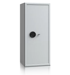 Die Stahlschränke aus der BS-Serie von Müller Safe sind eine ideale Wahl für überall dort, wo größere Mengen von Akten vor fremdem Zugriff oder leichten Bränden geschützt werden sollen. Diese doppelwandigen Safes bieten neben einer hohen Sicherheit und viel Platz auch ein ansprechendes Design, welches sich problemlos mit dem vorhandenen Büromobiliar kombinieren lässt. Aufgrund ihrer doppelten Wandung mit einer feuerbeständigen Isolierfüllung nach DIN 4102 sowie einem rund umlaufenden Feuerfalz schützen diese Stahlschränke Ihre wichtigen Akten vor leichten Bränden. Kräftige Rundbolzen sichern die Schränke zudem vor fremdem, unerwünschtem Zugriff ab. BS-Stahlschränke sind mit den unterschiedlichsten Fassungsvermögen erhältlich, alle Modelle besitzen jedoch Ordnertiefe und sind bereits bei der Auslieferung mit höhenverstellbaren Fachböden ausgerüstet.