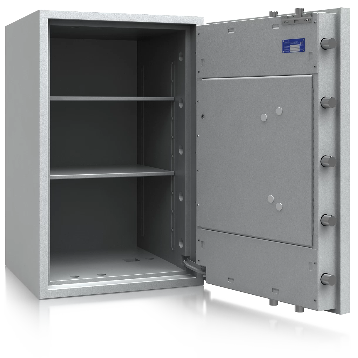 Mit einem Wertschutztresor der Baureihe EW 5 von Müller Safe können Sie je nach Ausführung kleine oder größere Mengen an Wertgegenständen, Akten und Dokumenten hochsicher aufbewahren. Diese robusten Tresore bieten eine sehr hohe Einbruchsicherheit gegen Angriffe mit mechanischen und auch thermischen Einbruchwerkzeugen durch den zertifizierten Widerstandsgrad 5.