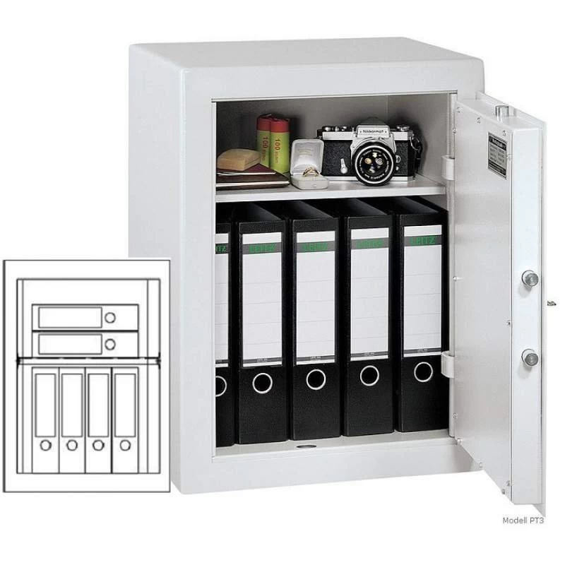 Mit einem Möbeltresor aus der PT-Serie von Müller Safe können Sie Ihre Wertgegenstände und Akten effektiv vor Diebstahl und leichten Bränden schützen. Die kleinen Tresore mit Verankerungsmöglichkeit in der Rückwand wie im Boden bieten eine Einbruchsicherheit der zertifizierten Sicherheitsstufe S2. Sie bestehen aus einem doppelwandigen Gehäuse und einer doppelwandigen Tür mit überaus kräftigen, verdeckten Scharnierbändern. Als Feuerschutz dienen ein rundumlaufender Feuerfalz sowie eine Schutzisolierung aus hochfeuerbeständiger Isoliermasse. Alle Modelle der PT-Serie sind mit einer Basquillverriegelung mit 25 mm starken, verchromten Bolzen ausgestattet.