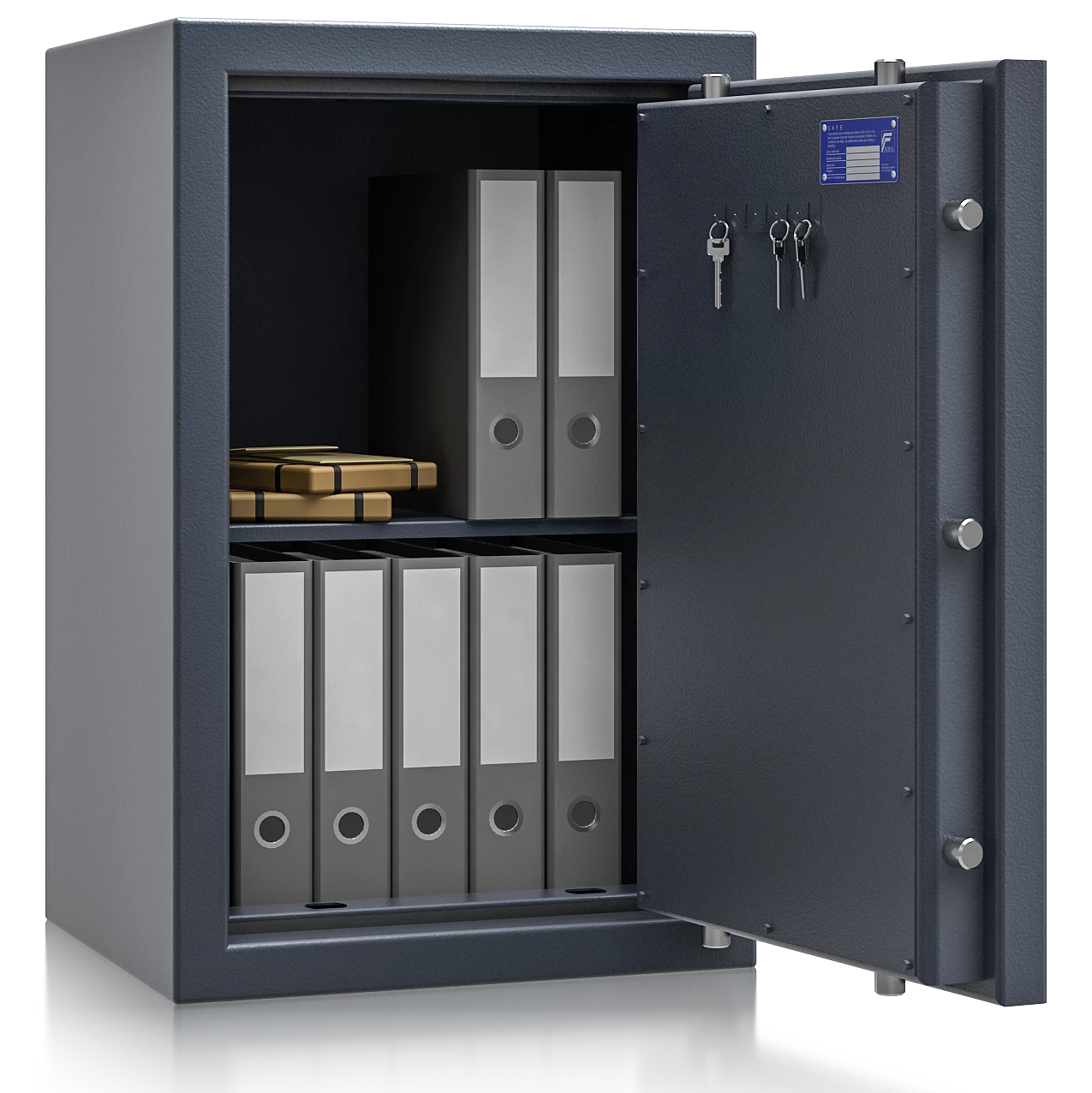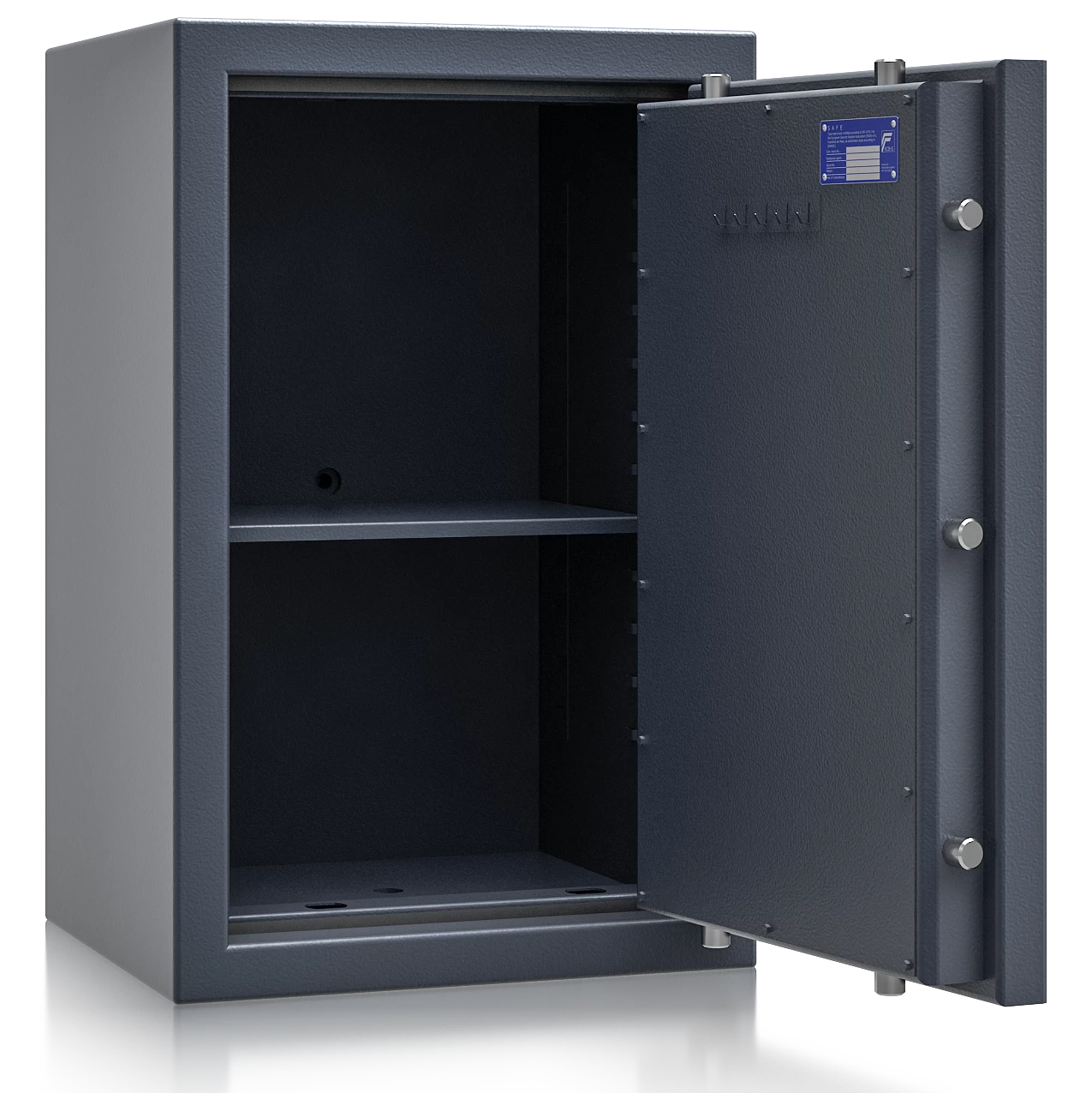 Die zertifizierte Sicherheitsstufe 2 nach EN 1143-1 (ECB-S) bescheinigt einen hohen Einbruchschutz und ermöglicht Versicherungssummen von bis zu € 100.000 privat und € 40.000 gewerblich *. Das Zertifikat wurde von ECB-S ausgestellt, wodurch diese Schränke bei jeder Versicherung gerne gesehen sind.
