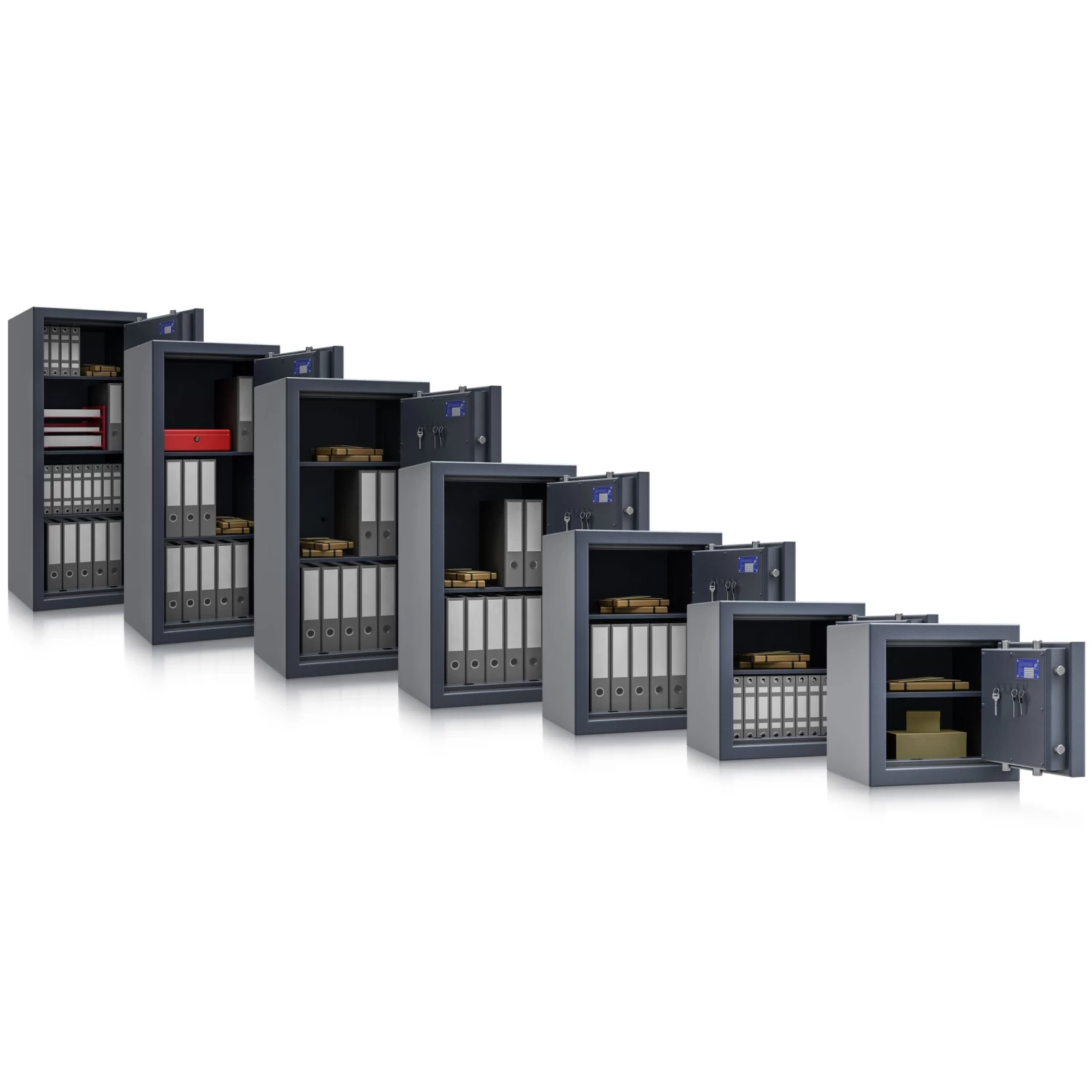 Die Wertschutzschränke BM2 des deutschen Herstellers Müller Safe sind ideale Safes für die Aufbewahrung von Wertgegenständen, Bargeld und wichtigen Dokumenten. Dabei genügen sie auch höheren Ansprüchen sowohl im privaten als auch im gewerblichen Bereich. Die BM2-Serie umfasst 7 Modelle, die aus einer mehrwandigen Konstruktion bestehen und mit hochentwickeltem Füllmaterial ausgekleidet sind. Damit bieten sie sehr guten Einbruchschutz bei gleichzeitig geringem Gewicht. Eine starke 4-seitige Verriegelung über massive Riegelbolzen, sowie ein zusätzliches Hintergreifprofil an der Bandseite verschließt den Safe zuverlässig.