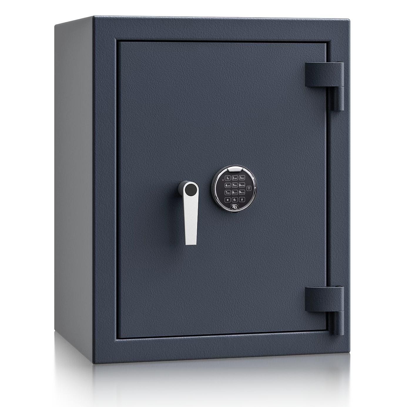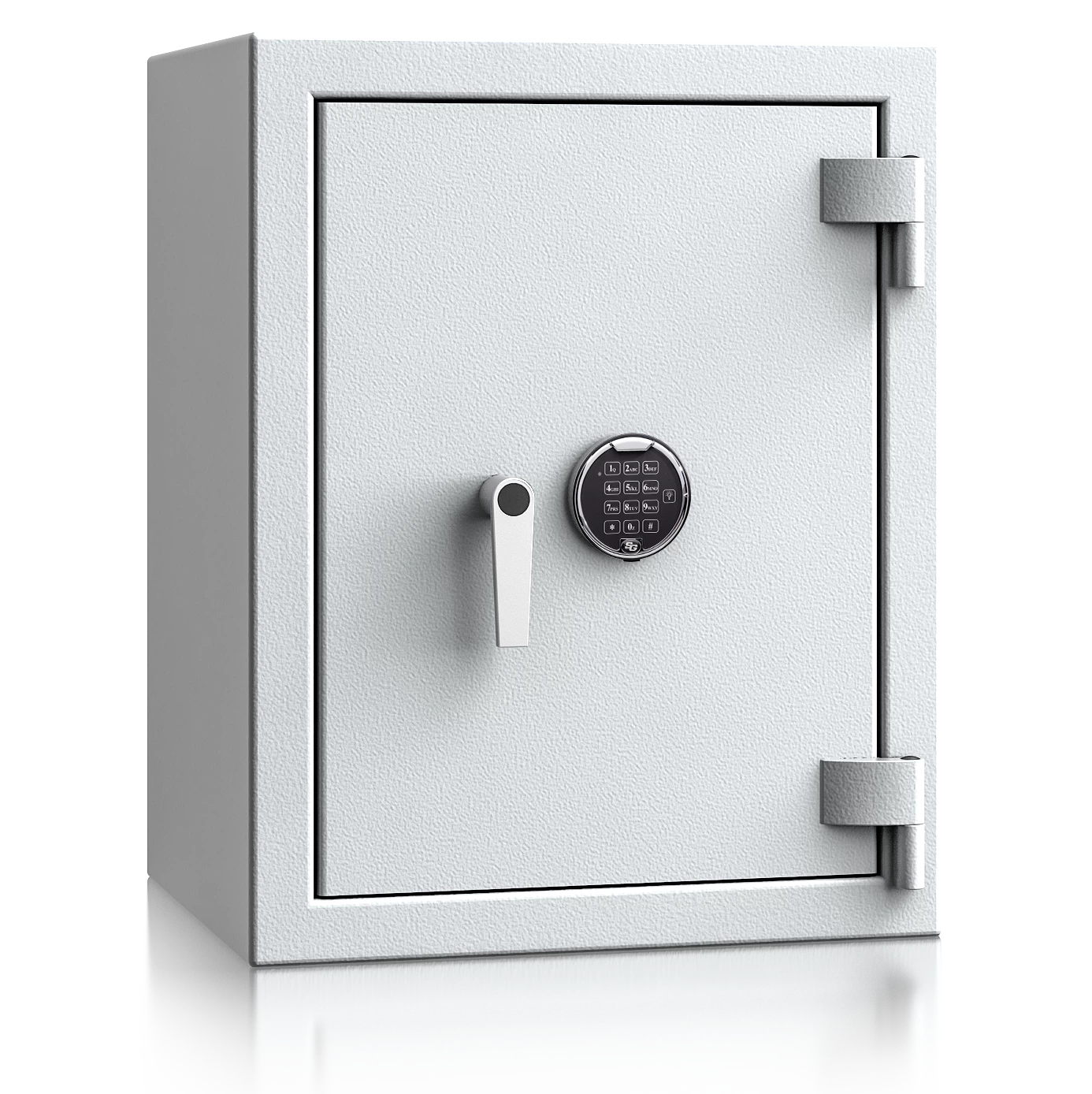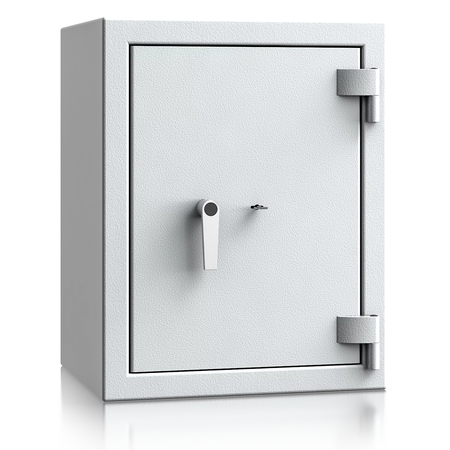 Diese Wertschutztresore werden serienmäßig mit einem hochsicheren Doppelbartschloss der VdS-Klasse 1 ausgeliefert, welches über 2 Schlüssel (120 mm lang) verfügt. Auf Wunsch steht jedes Modell auch mit einem komfortablen elektronischen Tastenschloss zur Auswahl. Für einfache Bedienung sorgt ein hochwertiger Hängegriff aus Metall (60 mm vorstehend).