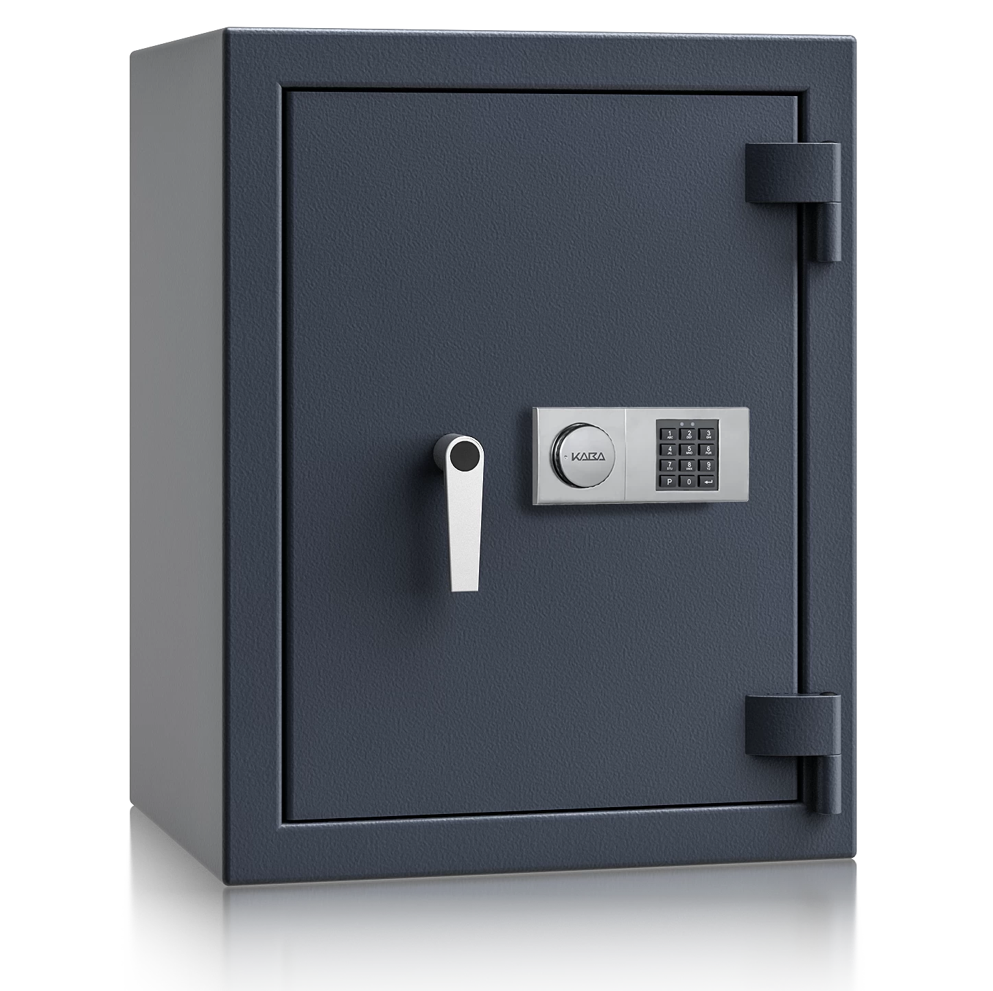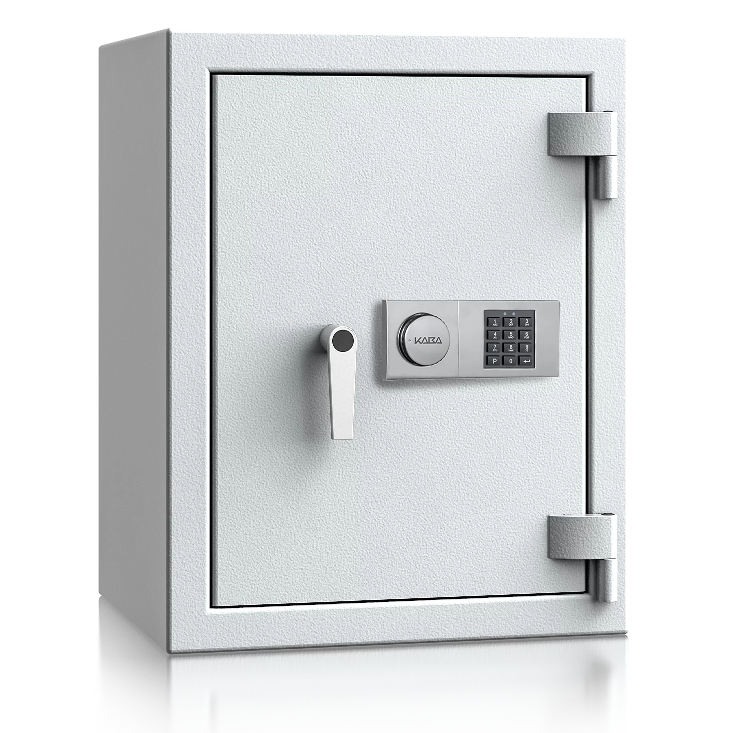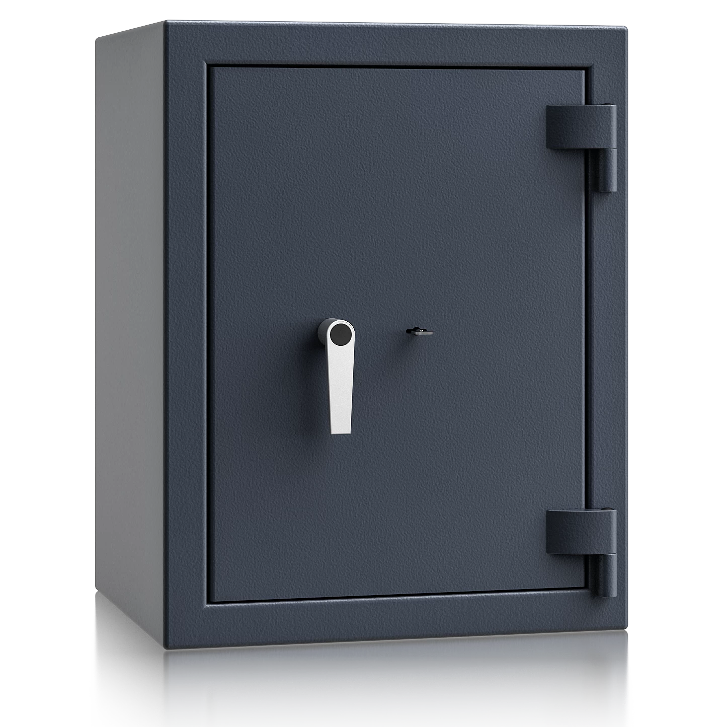 Diese Wertschutztresore werden serienmäßig mit einem hochsicheren Doppelbartschloss der VdS-Klasse 1 ausgeliefert, welches über 2 Schlüssel (120 mm lang) verfügt. Auf Wunsch steht jedes Modell auch mit einem komfortablen elektronischen Tastenschloss zur Auswahl. Für einfache Bedienung sorgt ein hochwertiger Hängegriff aus Metall (60 mm vorstehend).