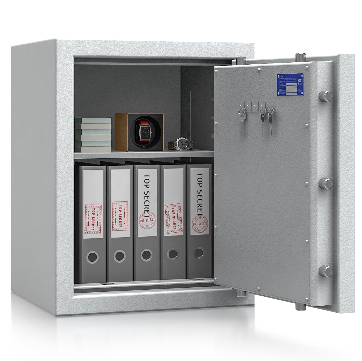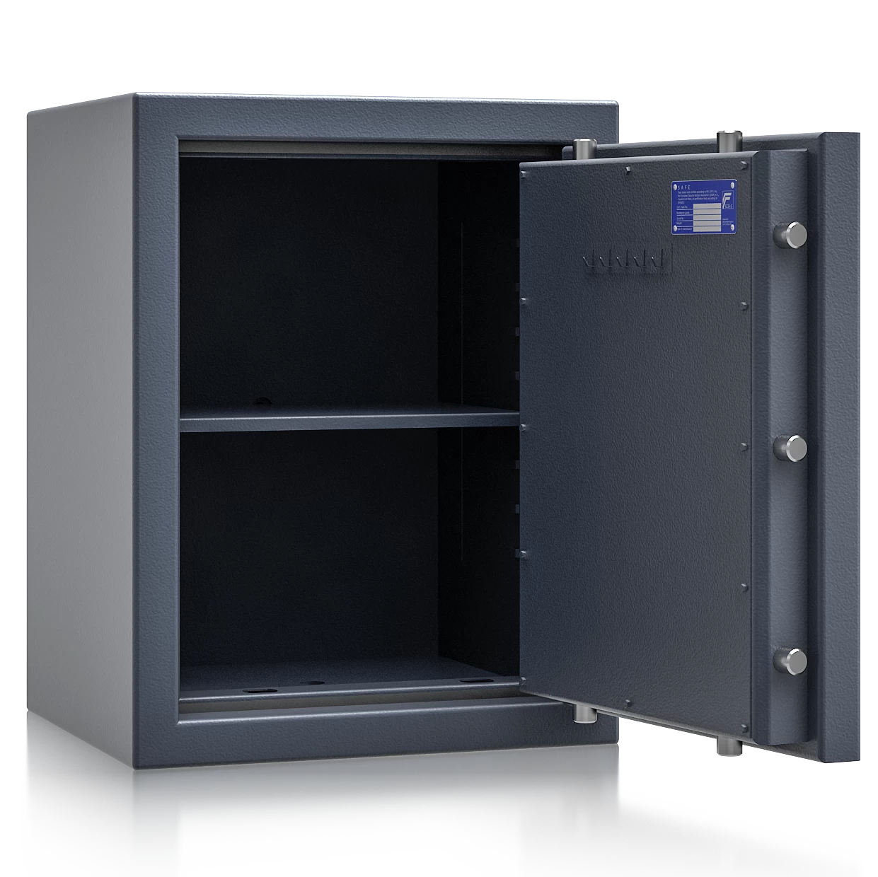 Die zertifizierte Sicherheitsstufe 3 nach EN 1143-1 (ECB-S) bescheinigt einen hohen Einbruchschutz und ermöglicht Versicherungssummen von bis zu € 200.000 privat und € 100.000 gewerblich *. Das Zertifikat wurde von ECB-S ausgestellt, wodurch diese Schränke bei jeder Versicherung gerne gesehen sind.