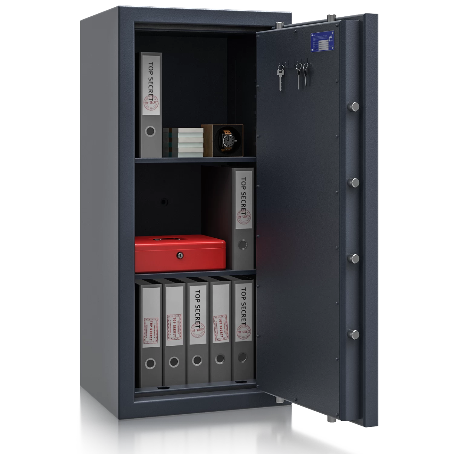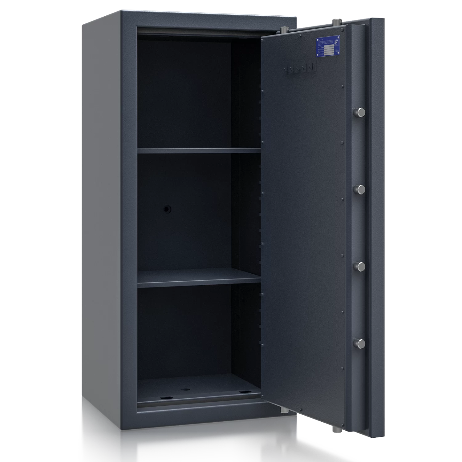Die zertifizierte Sicherheitsstufe 3 nach EN 1143-1 (ECB-S) bescheinigt einen hohen Einbruchschutz und ermöglicht Versicherungssummen von bis zu € 200.000 privat und € 100.000 gewerblich *. Das Zertifikat wurde von ECB-S ausgestellt, wodurch diese Schränke bei jeder Versicherung gerne gesehen sind.
