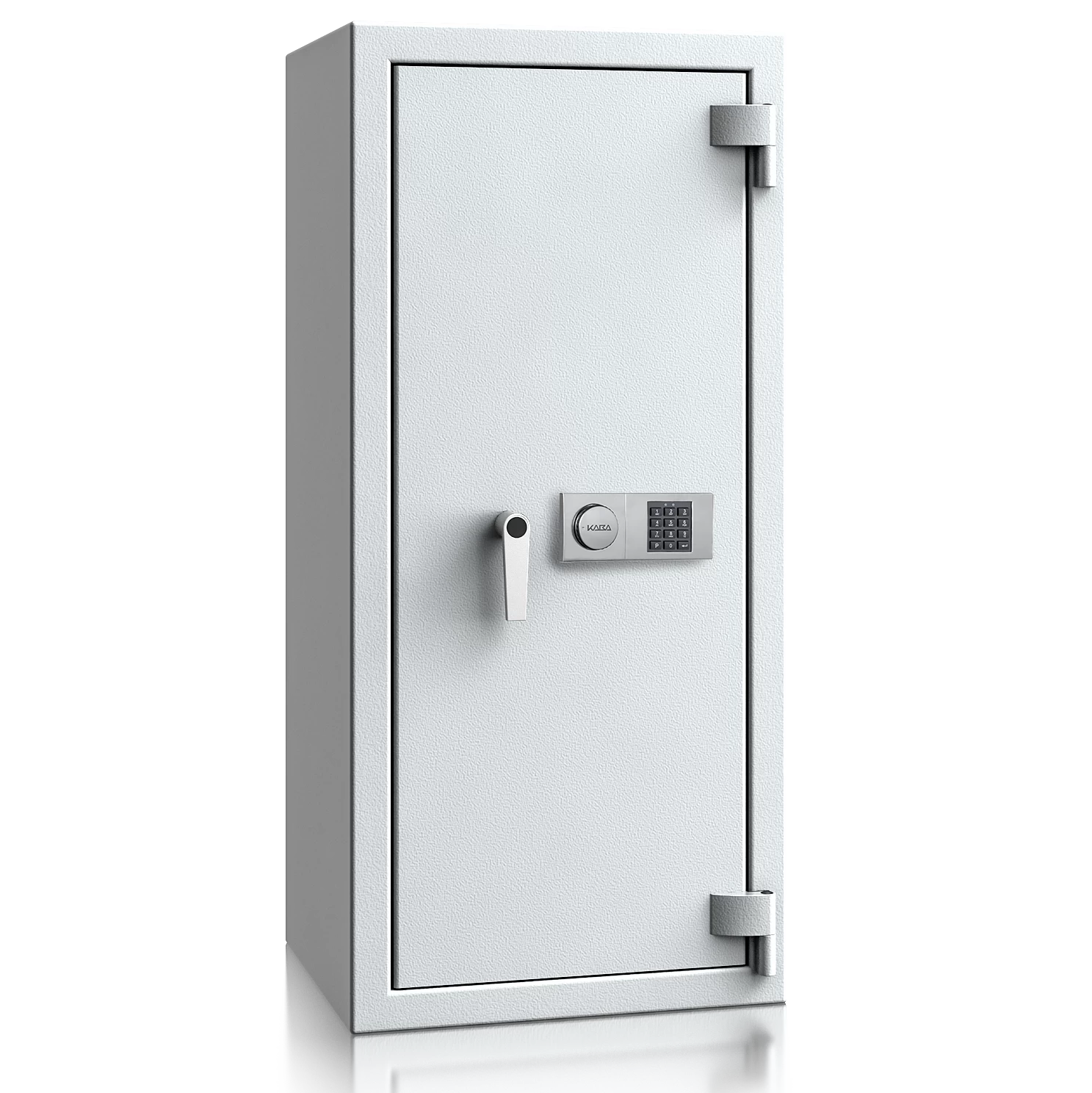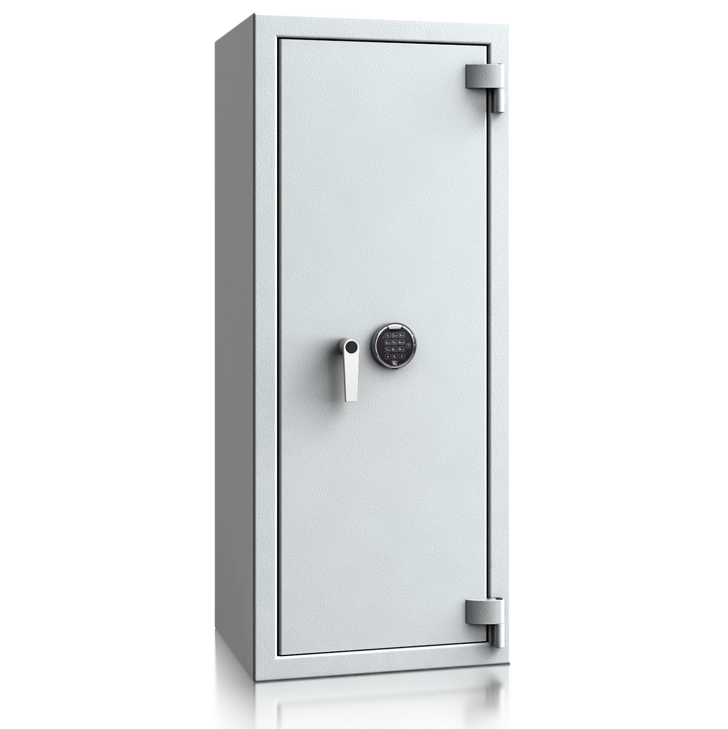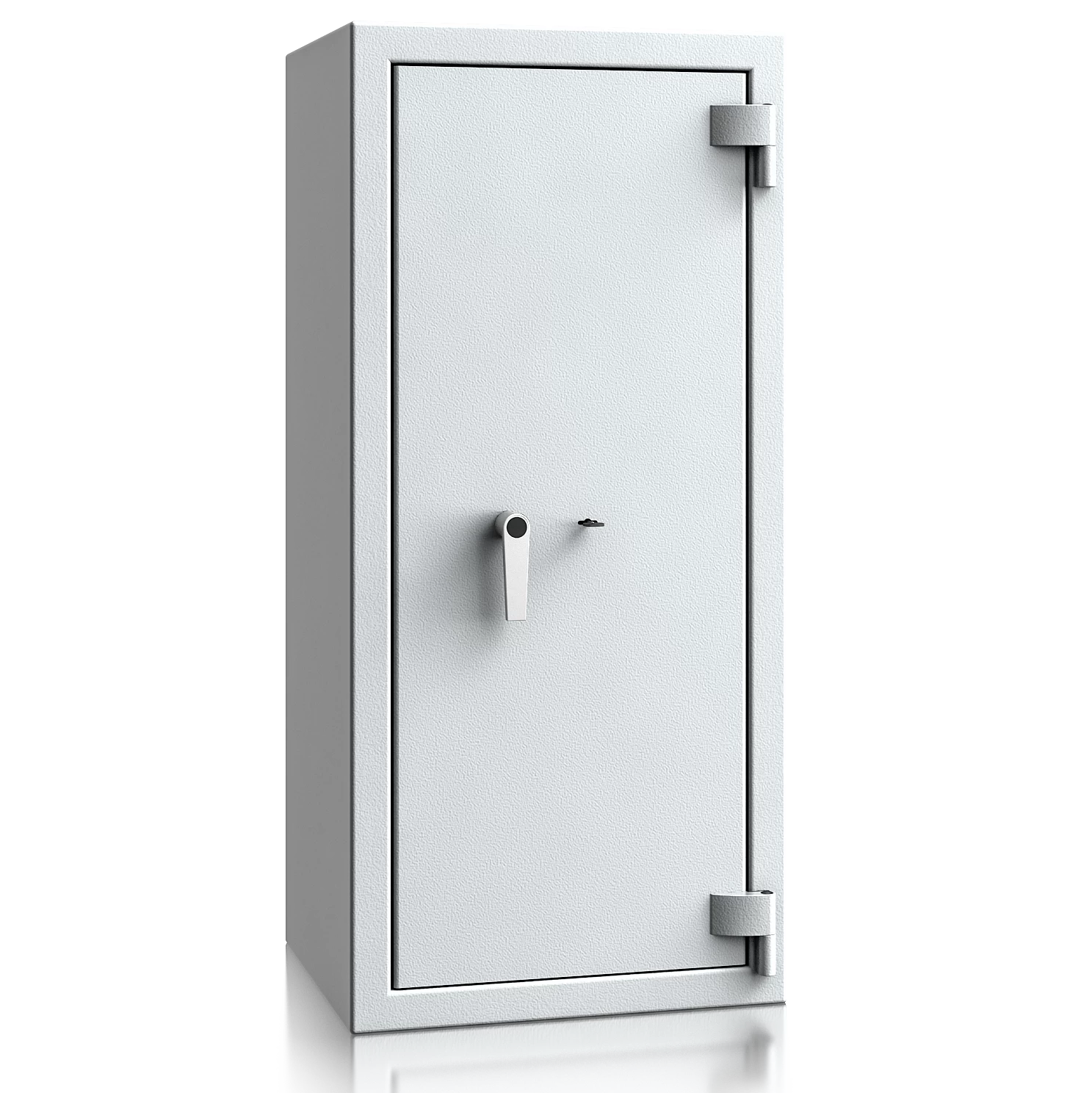 Diese Wertschutztresore werden serienmäßig mit einem hochsicheren Doppelbartschloss der VdS-Klasse 1 ausgeliefert, welches über 2 Schlüssel (120 mm lang) verfügt. Auf Wunsch steht jedes Modell auch mit einem komfortablen elektronischen Tastenschloss zur Auswahl. Für einfache Bedienung sorgt ein hochwertiger Hängegriff aus Metall (60 mm vorstehend).