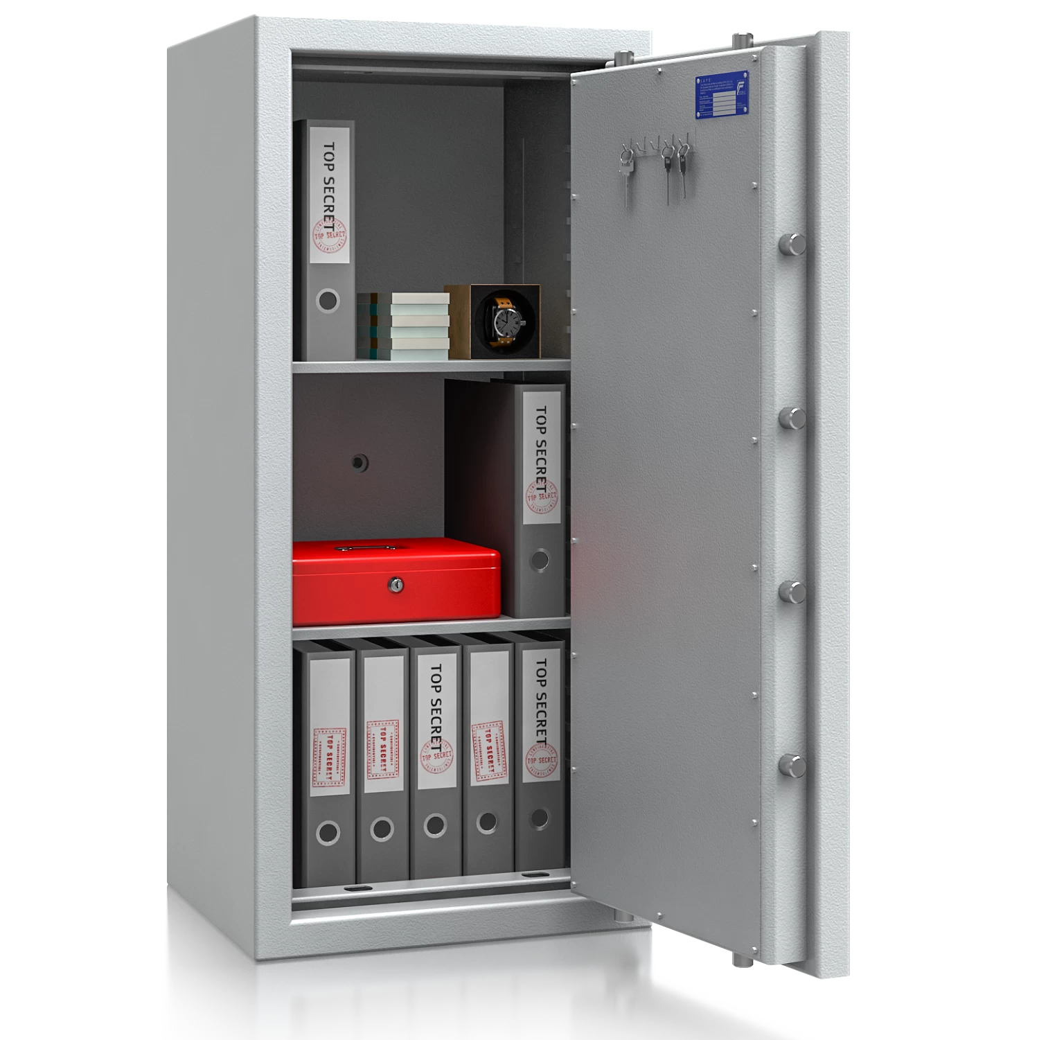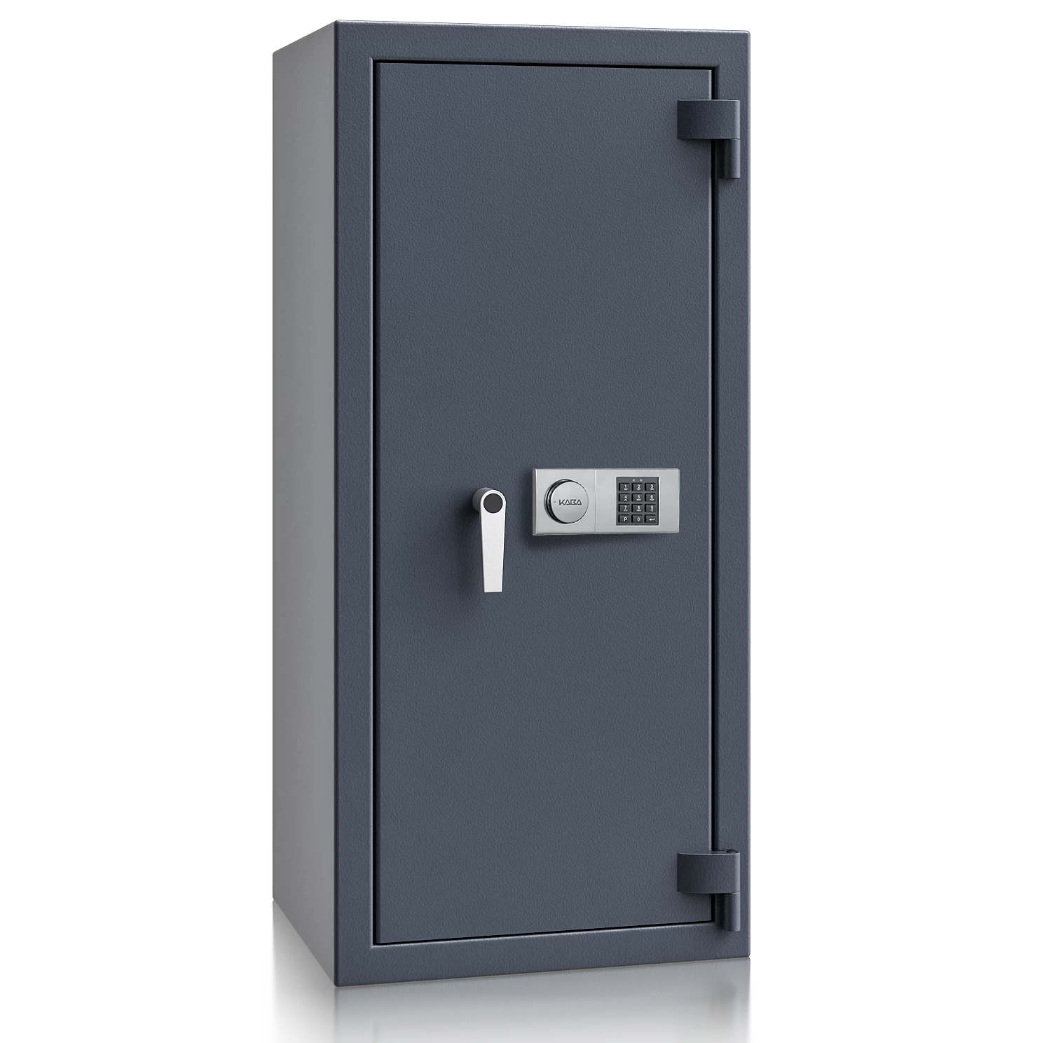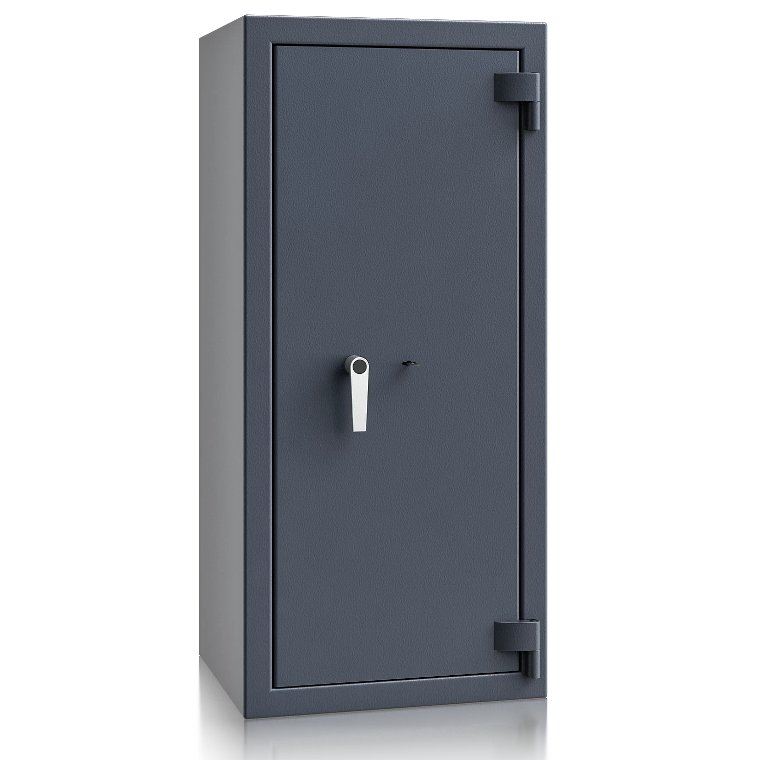 Diese Wertschutztresore werden serienmäßig mit einem hochsicheren Doppelbartschloss der VdS-Klasse 1 ausgeliefert, welches über 2 Schlüssel (120 mm lang) verfügt. Auf Wunsch steht jedes Modell auch mit einem komfortablen elektronischen Tastenschloss zur Auswahl. Für einfache Bedienung sorgt ein hochwertiger Hängegriff aus Metall (60 mm vorstehend).