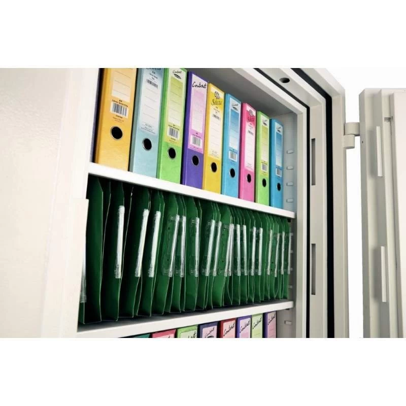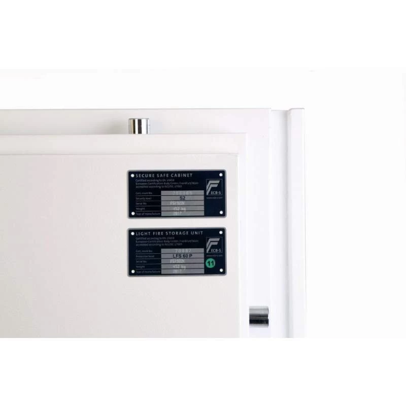 Papierdokumente sind gemäß EN15659 ECB.S LFS60P im Brandfall bis zu 60 Minuten lang vor zu hohen Temperaturen sicher. Für digitale Medien wie CDs oder USB-Datenträger gilt ebenso ein Feuerschutz für bis zu eine Stunde nach Fabrikstest DIP120-60 DMAA. Darüber hinaus müssen Sie sich auch bei einem Etagensturz infolge eines Brandes nicht um den Tresorinhalt sorgen: Alle Modelle der Reihe sind aus einer Höhe von 9,15 m erfolgreich sturzgetestet.