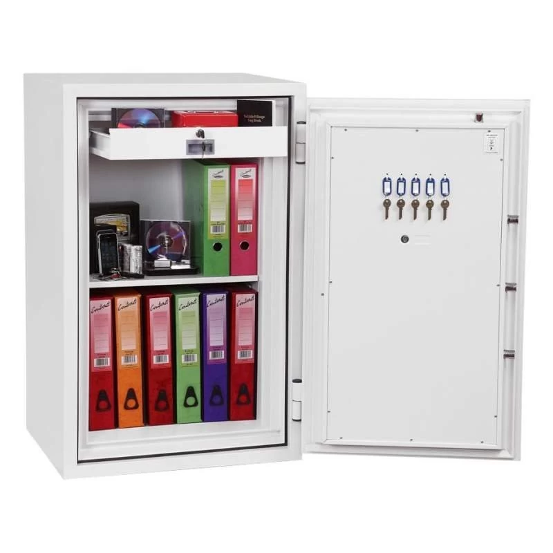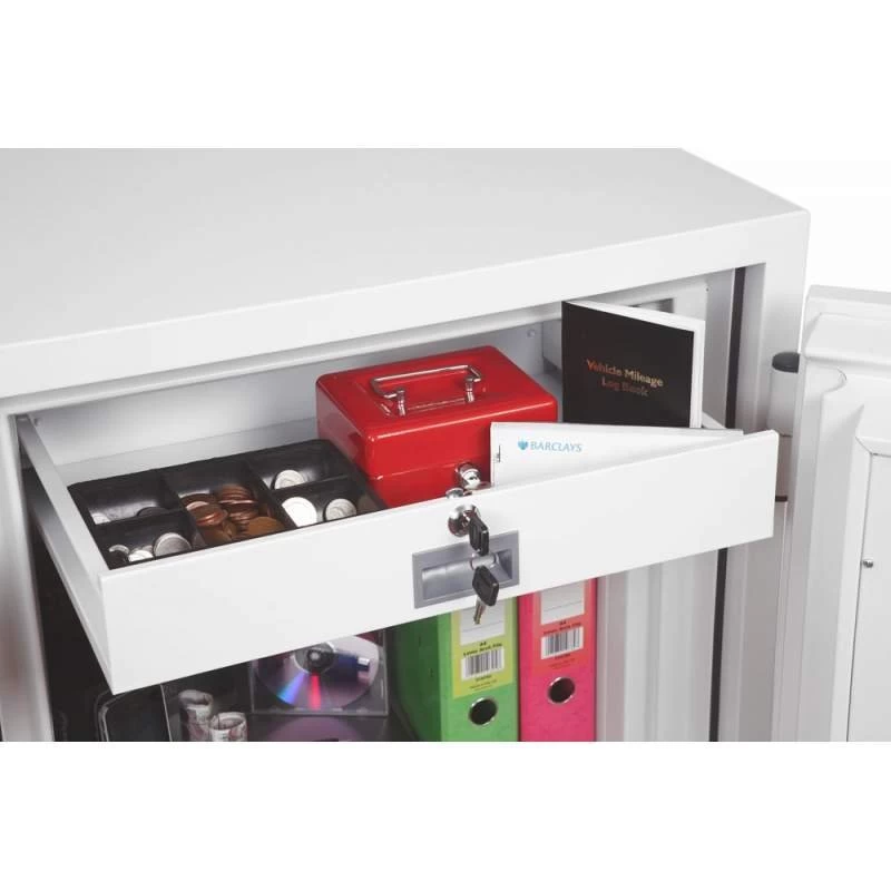 Alle Safes dieser Serie sind standardmäßig mit einem höhenverstellbaren Fachboden sowie einer ausziehbaren Schublade ausgestattet. Hier wird sichergestellt, dass die Aufbewahrung Ihrer wichtigsten Dokumente – unabhängig davon, ob es sich dabei um Versicherungspolizzen, Pässe, Wertpapiere o.ä. handelt – auch möglichst platzsparend und Ihren Vorstellungen entsprechend innerhalb des Safes organisiert werden kann.