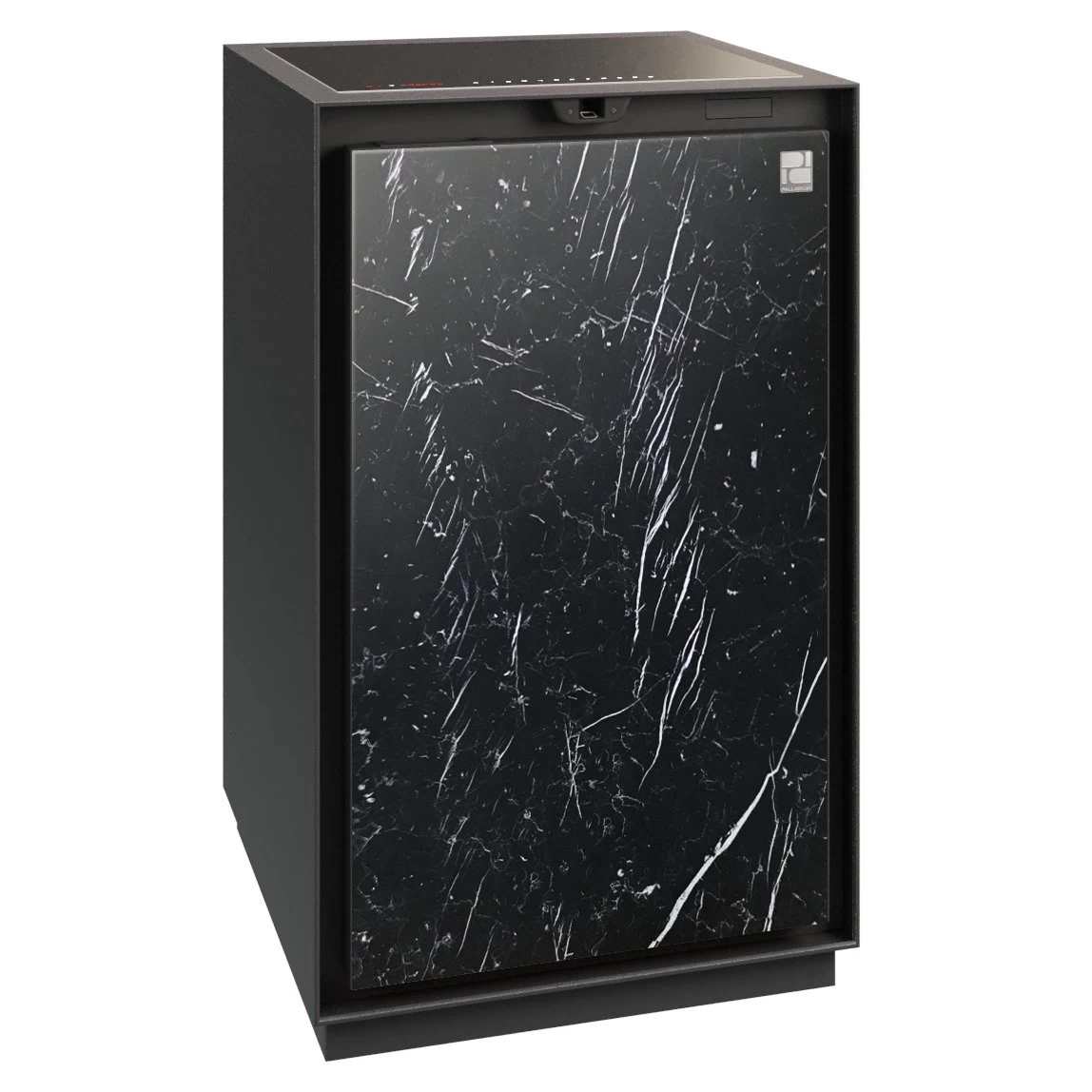 Die Innenausstattung besteht aus einer ausziehbaren Schublade, 6 helle LEDs für eine perfekte Ausleuchtung bei geöffneter Tür und 2 Fachböden aus 5mm starkem, gehärtetem Glas (LS8002E: 3 Stück). Die hochwertige schwarze Beschichtung des Korpus und die stilvollen Front-Designs runden die Optik ab.