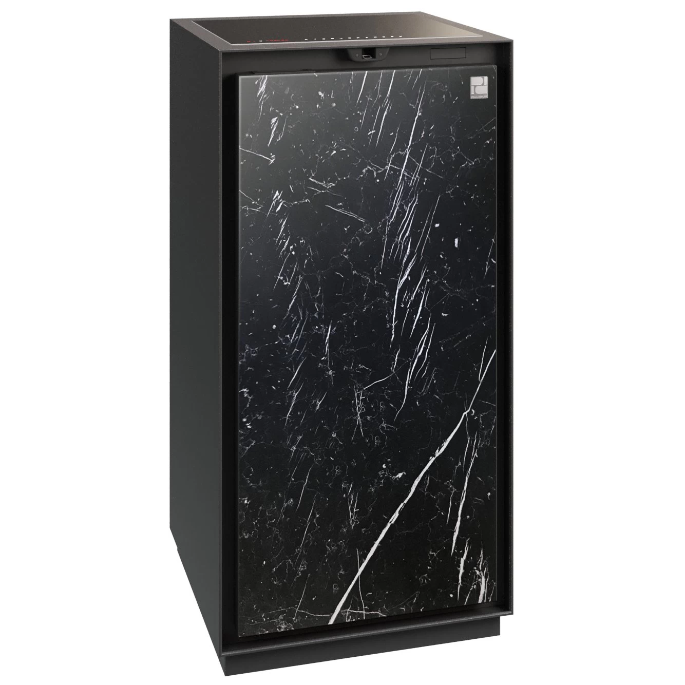 Die Innenausstattung besteht aus einer ausziehbaren Schublade, 6 helle LEDs für eine perfekte Ausleuchtung bei geöffneter Tür und 3 Fachböden aus 5mm starkem, gehärtetem Glas (LS8001E: 2 Stück). Die hochwertige schwarze Beschichtung des Korpus und die stilvollen Front-Designs runden die Optik ab.