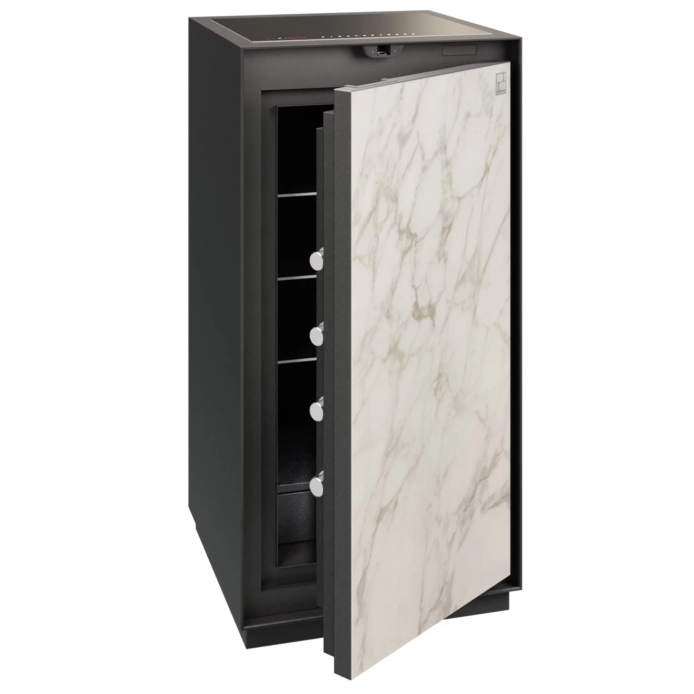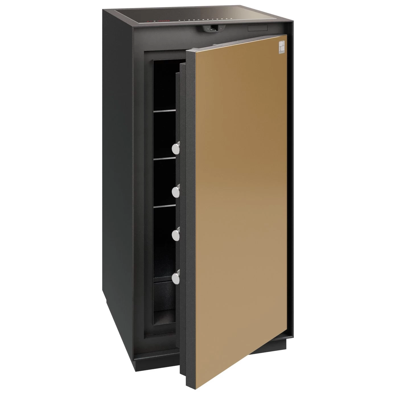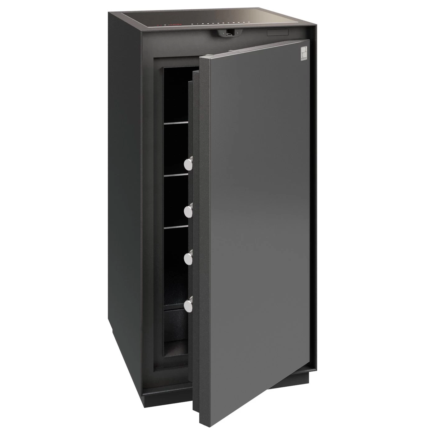 Diese Premium-Tresore verfügen standardmäßig über ein elektronisches Codeschloss mit einer ergonomisch gestalteten Touchpanel-Tastatur aus gehärtetem Glas auf der Oberseite des Tresores sowie alternativ über einen Fingerabdrucksensor zu