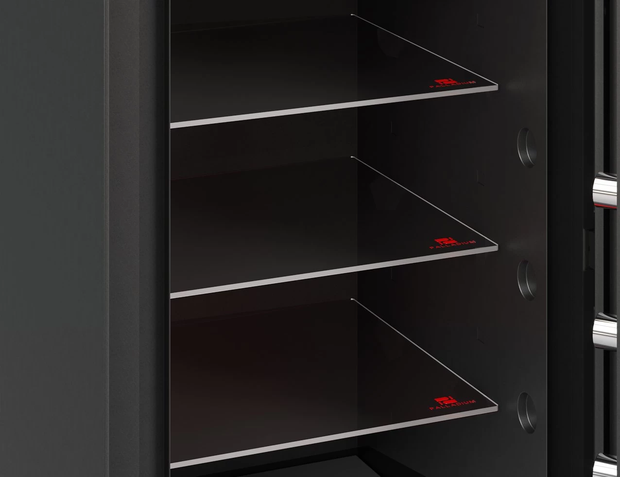 Die Premiumtresore aus der Palladium-Serie des englischen Traditionsherstellers Phoenix Safe überzeugen mit Design und Technologie. Die eleganten Fronten passen in hochwertige Büroräume ebenso wie in den erlesen-ausgestatteten Privatbereich. Laut Hersteller bietet dieses Modell Feuerschutz für Papierdokumente über 60 Minuten. Gemeinsam mit dem Einbruchschutz gemäß Sicherheitsstufe S2 (EN 14450) ergibt sich dadurch ein kombinierter Schutz vor den größten Gefahren für Wertgegenstände und Dokumente.