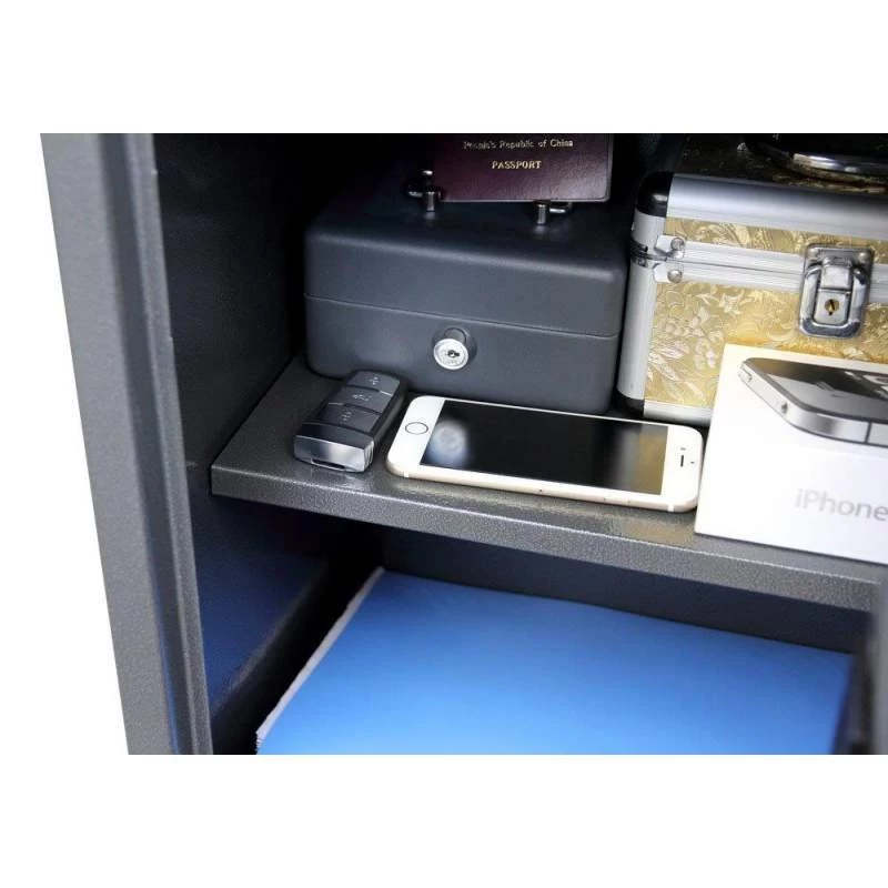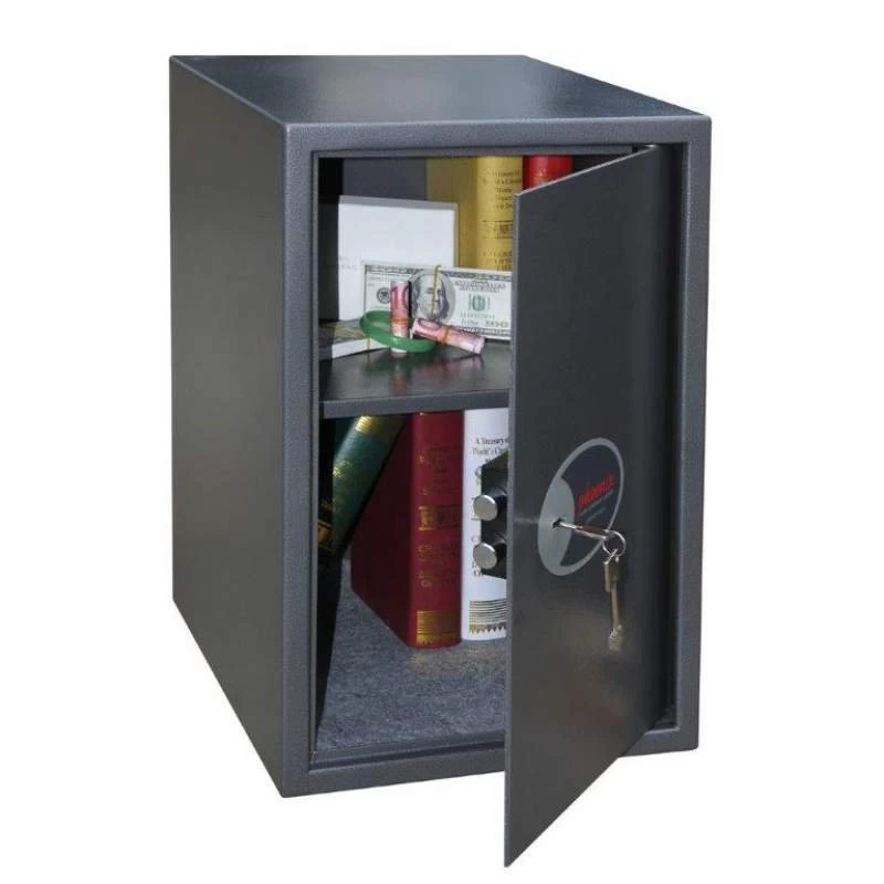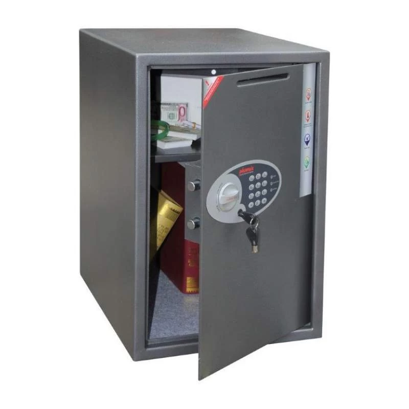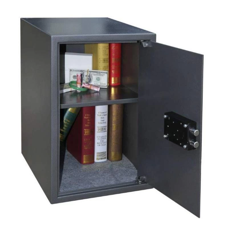 - Der Tresorkorpus ist mit 1,5 mm starken Stahlplatten und einer 4 mm dicken Tür ausgestattet