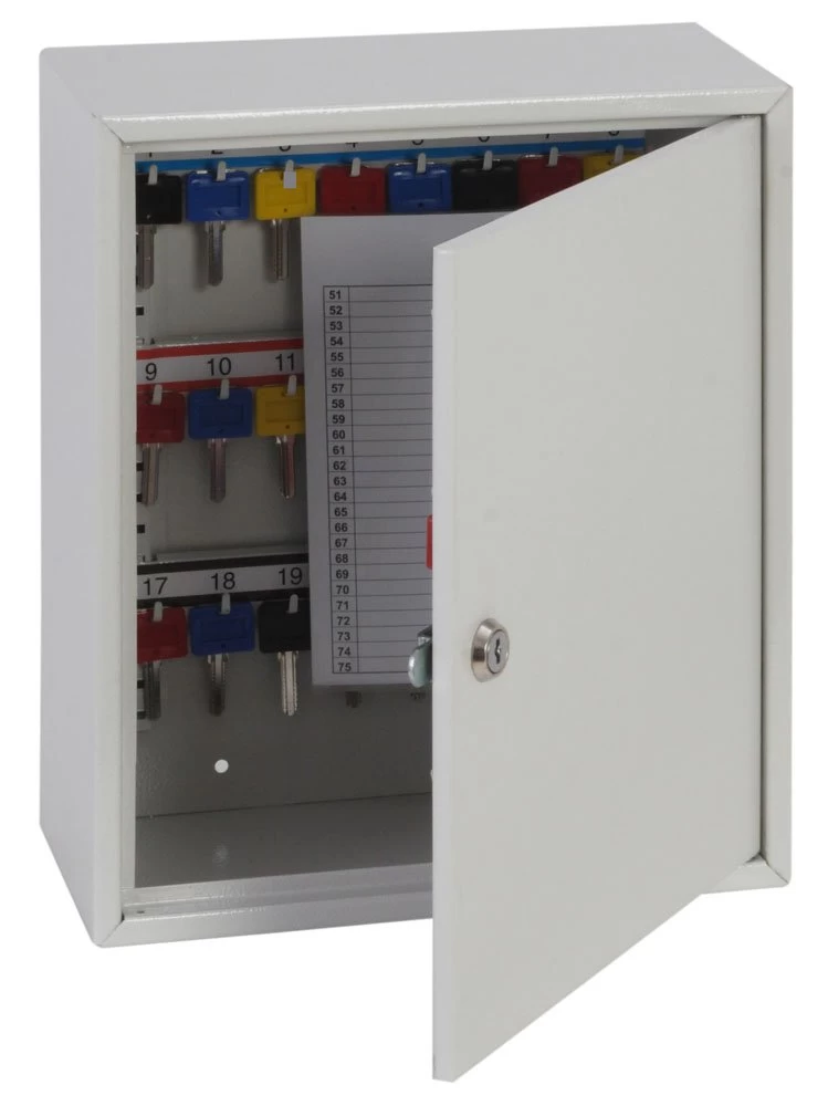 Standardmäßig werden die Schlüsselschränke dieser Baureihe mit einem hochwertigen Zylinderschloss inklusive 2 Schlüsseln ausgeliefert. Optional sind sie auch mit einem elektronischen Tastenschloss oder einem mechanischen Druckzahlenschloss erhältlich. Bei beiden Modellen kann der Code individuell gewählt werden.
