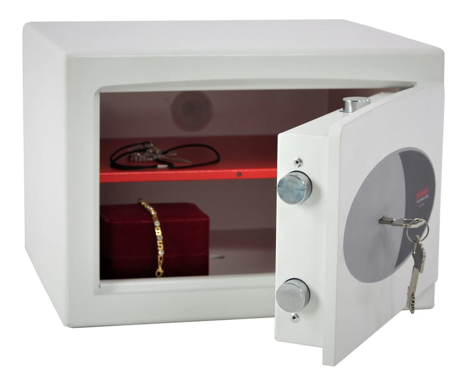 Serienmäßig verfügen alle Modelle über einen höhenverstellbaren Fachboden. Das Modell HS0674 verfügt zudem über ein sperrbares Innenfach an der Oberseite. Dieses wird mit 2 Schlüsseln geliefert.