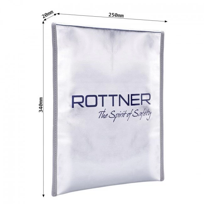 Diese feuerfeste Dokumententasche ist die perfekte Erweiterung Ihres Tresores zum Schutz Ihrer Dokumente, Verträge, Bilanzen, Polizzen oder von Bargeld. Aus Glasfaser-verstärktem Kunststoff gefertigt, und mit Aluminium beschichtet, schützt diese Tasche nicht nur vor Feuer und Hitze, sondern zusätzlich auch vor Spritz- und Löschwasser. Diese Taschen verfügen über einen komfortablen Reißverschluss und eine Sicherheitslasche mit Klettverschluss. Dadurch garantieren sie gleichzeitig hohen Komfort, als auch gute Isolationseigenschaften. Im Innenraum sind die Rottner Dokumententaschen mit hochwertigem rotem Samt ausgekleidet.