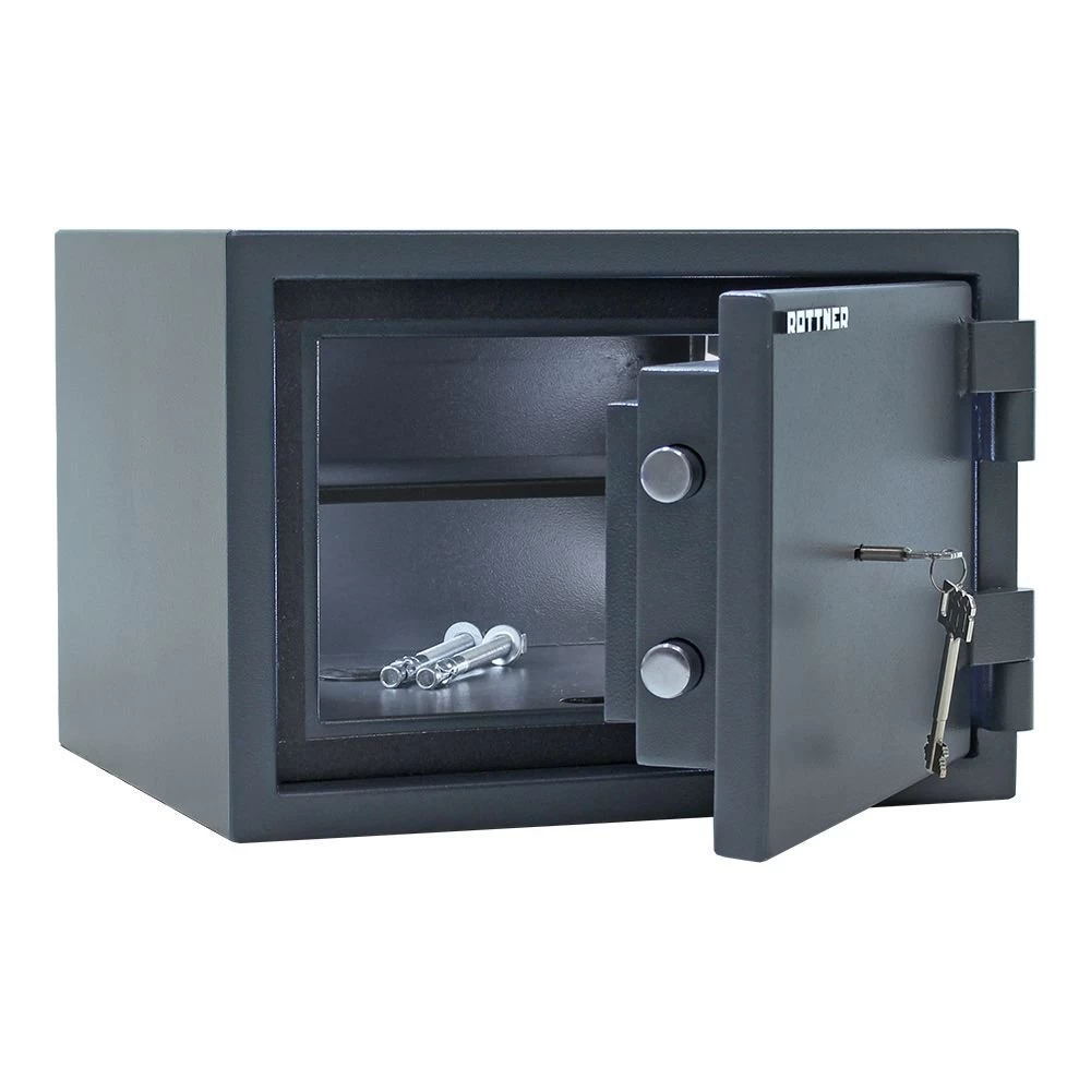 Die Feuerschutztresore FireHero von Rottner Security eignen sich ideal für die brand- und einbruchsichere Aufbewahrung von Wertgegenständen, Bargeld und wichtigen Dokumenten. Durch den hochwertigen, kombinierten Schutz vor Einbruch und Feuer sind sie ideal für die Verwendung im privaten sowie im gewerblichen Bereich geeignet. Der Brandschutz schützt zuverlässig vor Feuer wie Hitze und durch die aufquellenden Brandschutzdichtungen auch vor Löschwasser. Die FireHero Tresore bestehen aus einer mehrwandigen Konstruktion, die mit einem hochmodernen Isolationsfüllstoff ausgefüllt ist. Die massive Tür wird über 4 massive Sperrbolzen auf 3 Seiten gesichert.